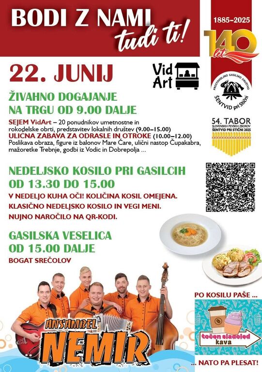 V okviru nedeljskega spremljevalnega programa bo v Šentvidu pri Stični potekal tradicionalni sejem obrti in umetnosti 𝐕𝐢𝐝𝐀𝐫𝐭, na katerem se bodo predstavili lokalni ustvarjalci in oblikovalci, godbe, mažoretke in drugi nastopajoči, ki bodo tradicionalno obogatili povorko udeležencev 54. Tabora.