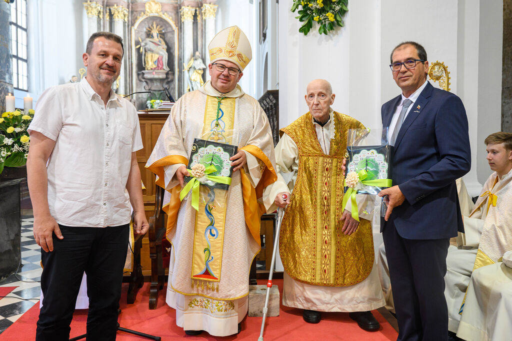 V nedeljo, 22. junija, so v župniji Stična praznovali dva visoka jubileja: biserno mašo upokojenega stiškega opata p. Antona Nadraha in srebrno mašo sedanjega opata Maksimilijana Fileja. Slovesne svete maše so se udeležili tudi župan Dušan Strnad s soprogo in podžupan Tomaž Smole.