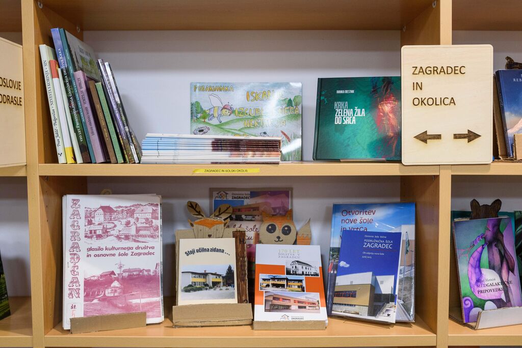 Novi prostori knjižnice so umeščeni v že obstoječo šolsko knjižnico Osnovne šole Zagradec in je sad prizadevnega sodelovanja med lokalno skupnostjo, knjižnico in šolo, ki je zanjo ponudila prostor.