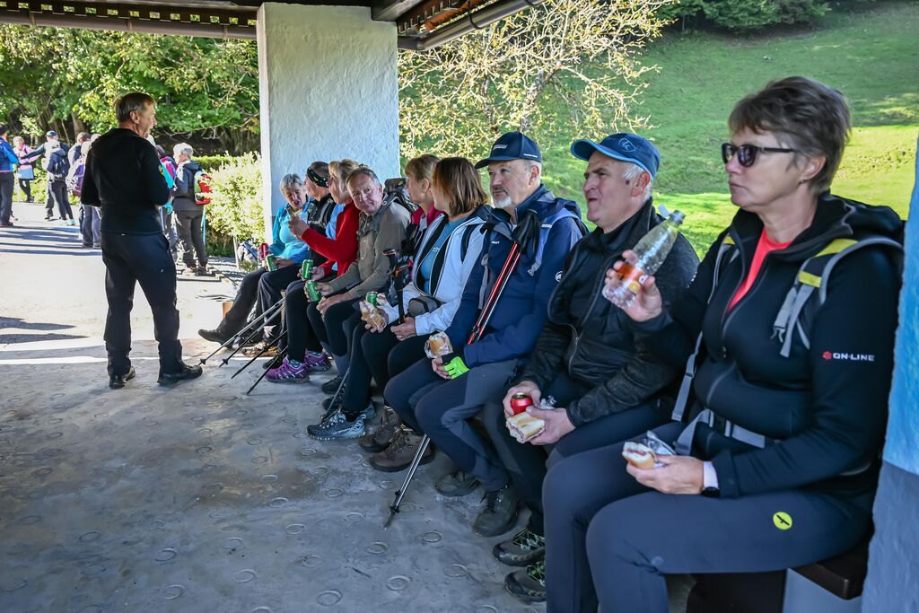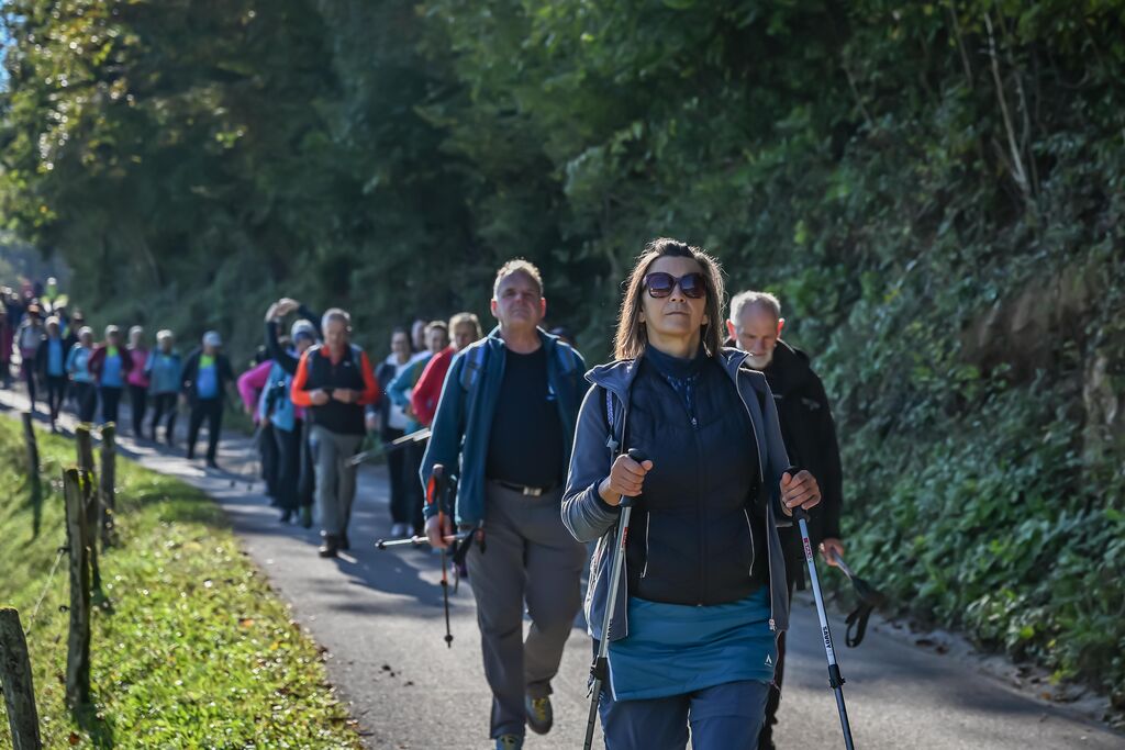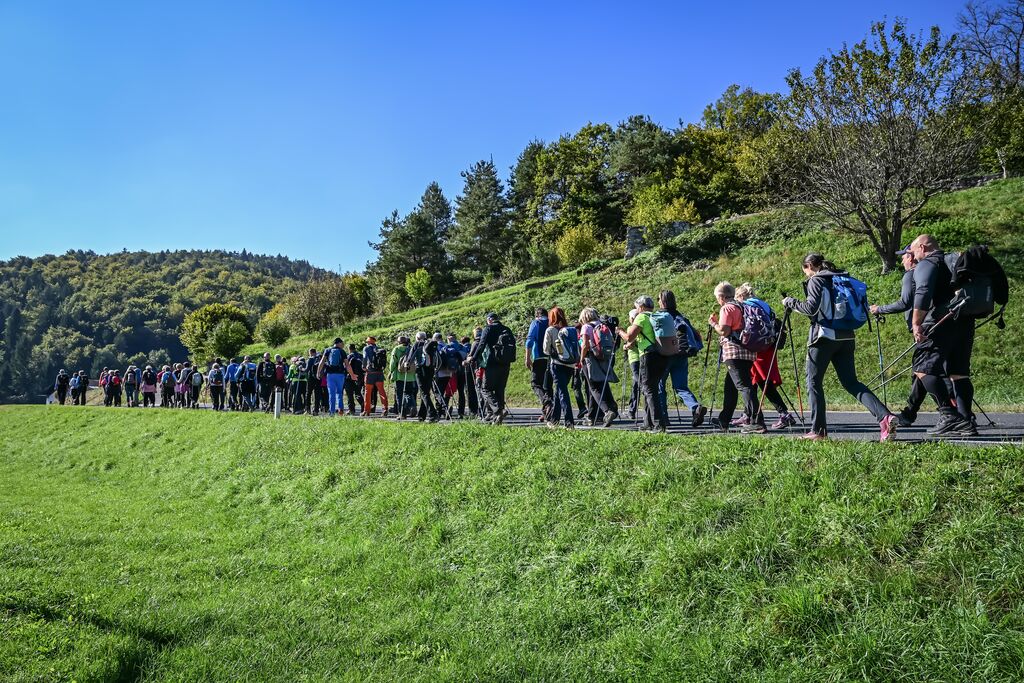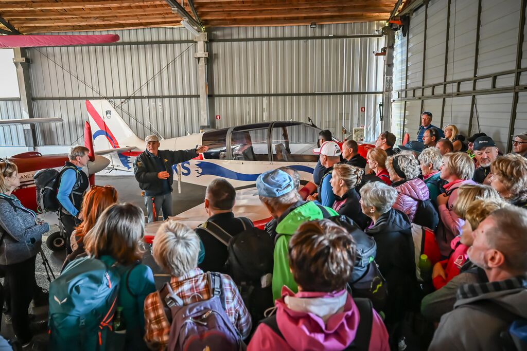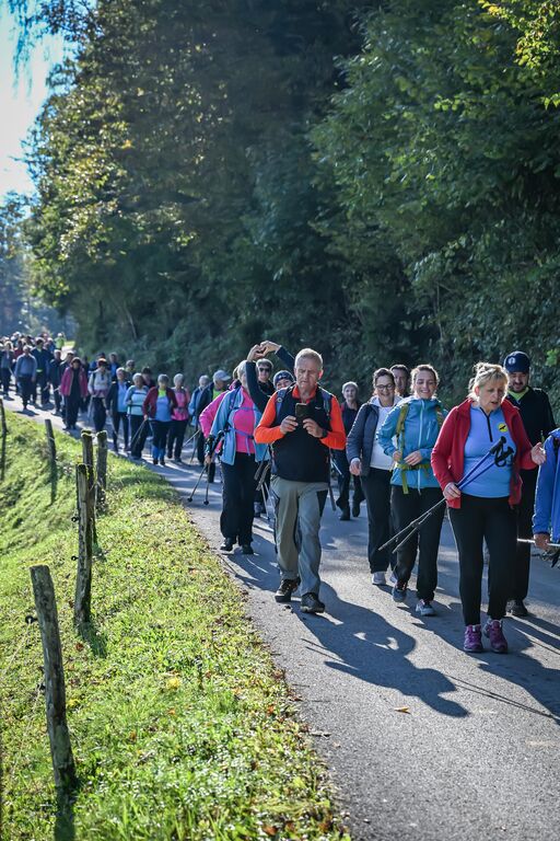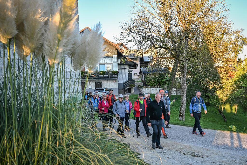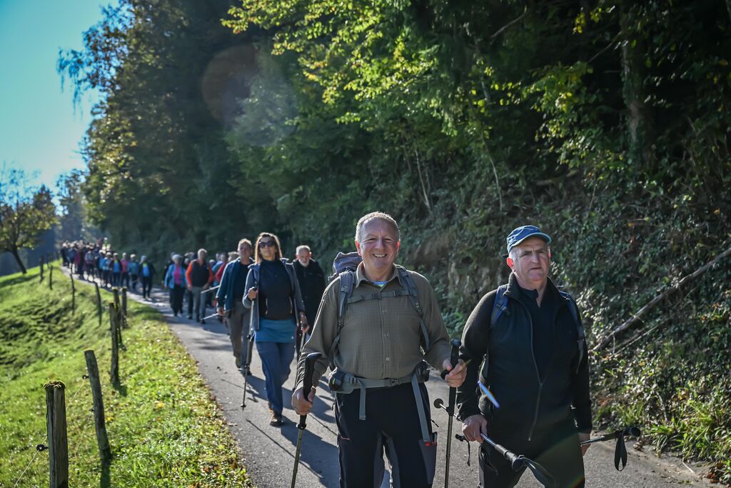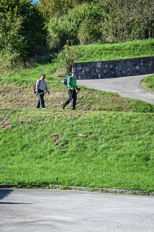 Sledila je pot proti vinskim goricam na Debelem hribu, kjer so jih vinogradniki pogostili s cvičkom Debelohribčkom. Preko Oteč Vrha so prispeli do Temenice, kjer so pod toplarjem na Turistični kmetiji Fajdiga uživali v okusni obari. Zatem je pot vodila proti Letališču Šentvid – tam so se pohodniki srečali s člani letalskega kluba, si ogledali letala ter prikaz padalcev.