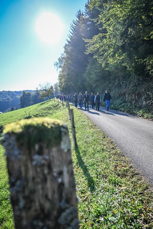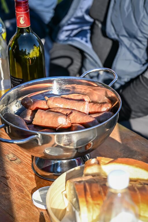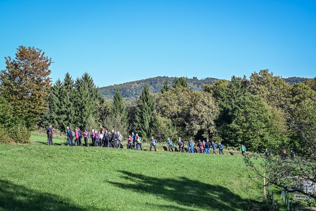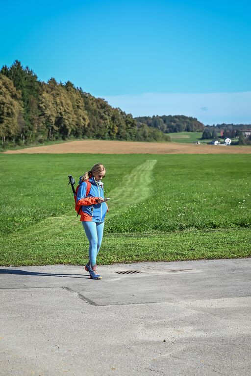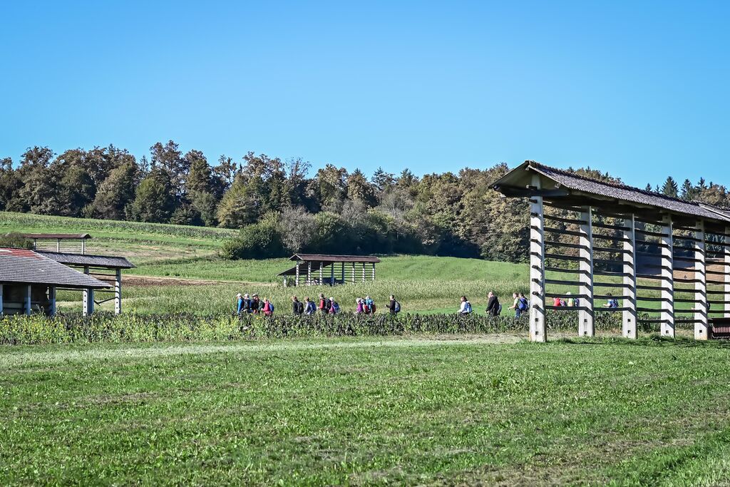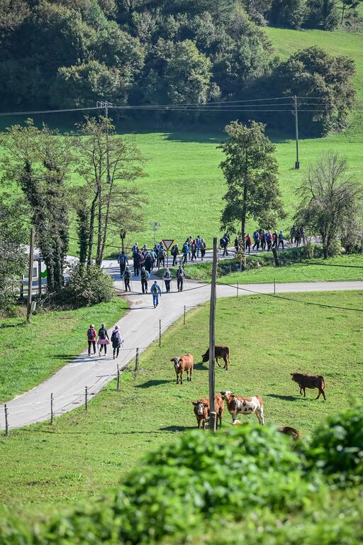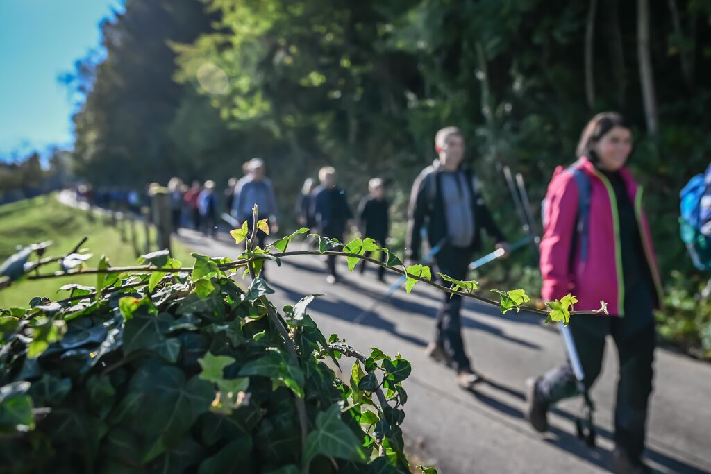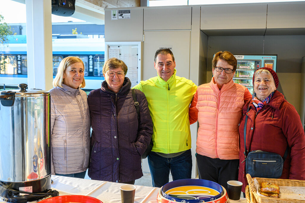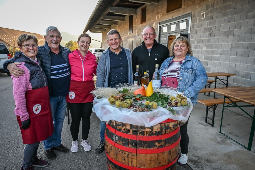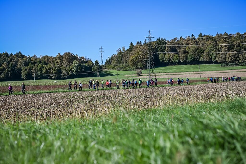Sledila je pot proti vinskim goricam na Debelem hribu, kjer so jih vinogradniki pogostili s cvičkom Debelohribčkom. Preko Oteč Vrha so prispeli do Temenice, kjer so pod toplarjem na Turistični kmetiji Fajdiga uživali v okusni obari. Zatem je pot vodila proti Letališču Šentvid – tam so se pohodniki srečali s člani letalskega kluba, si ogledali letala ter prikaz padalcev.