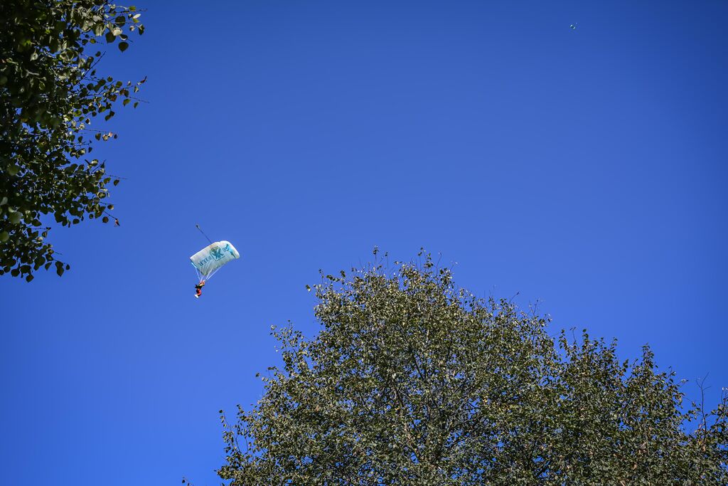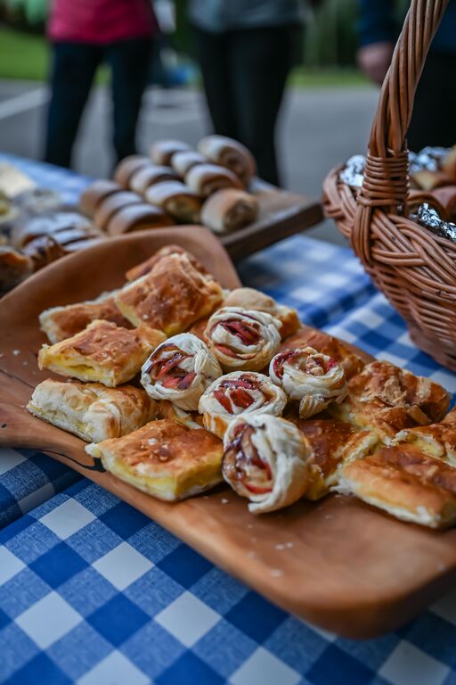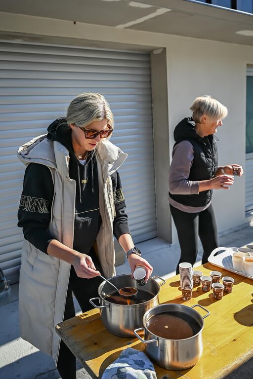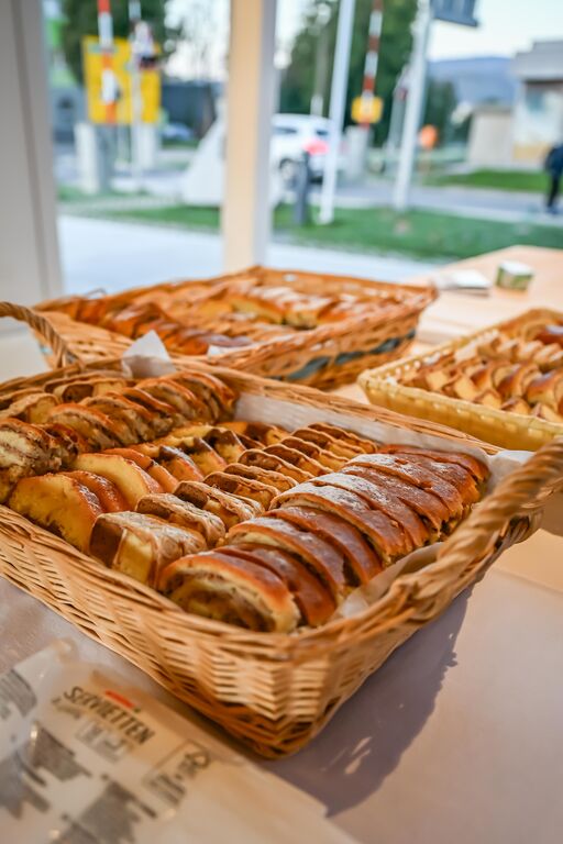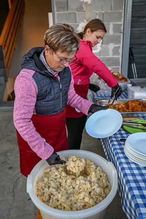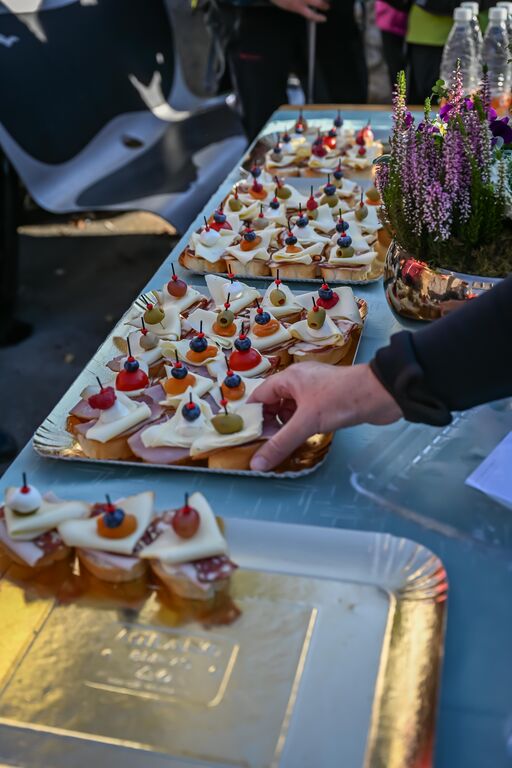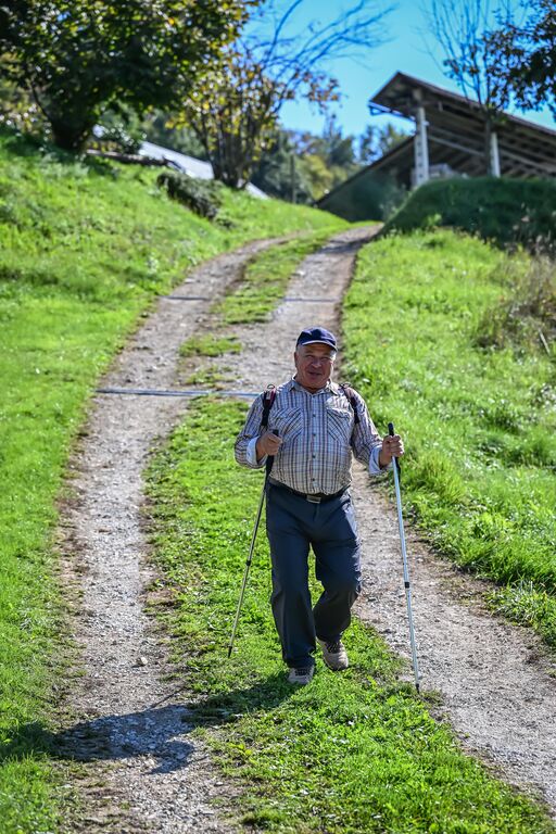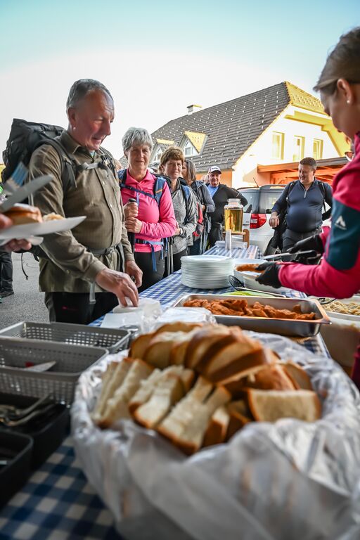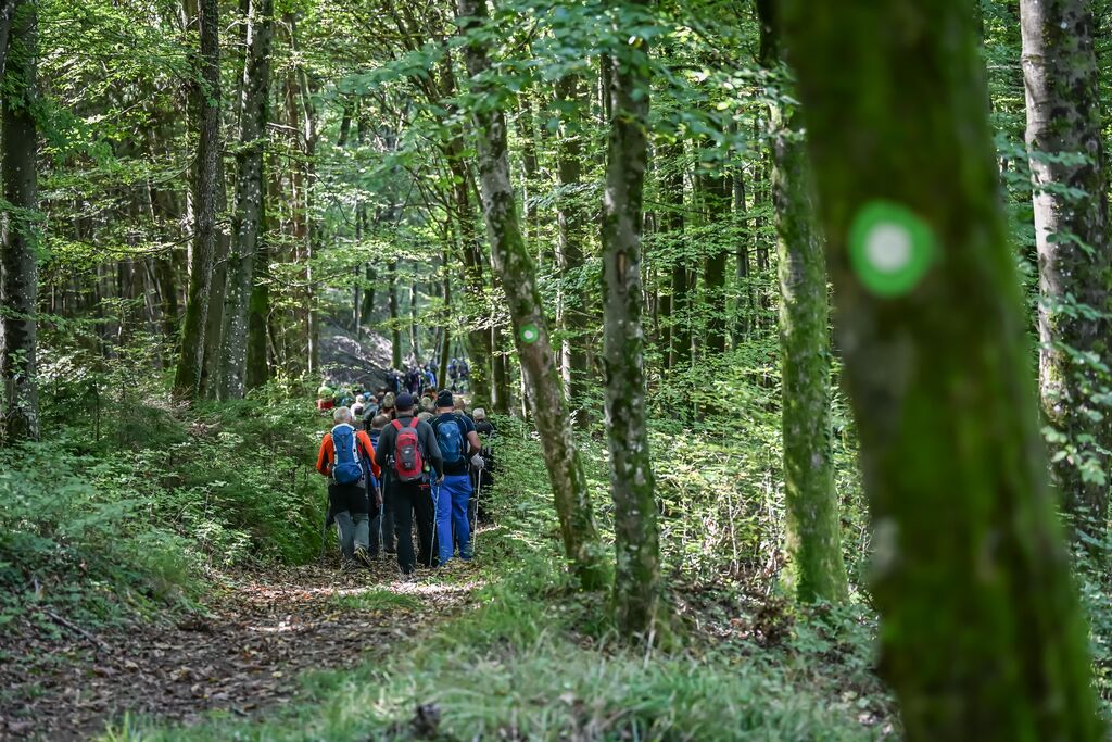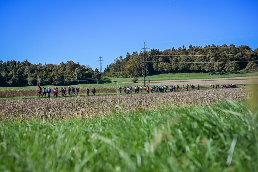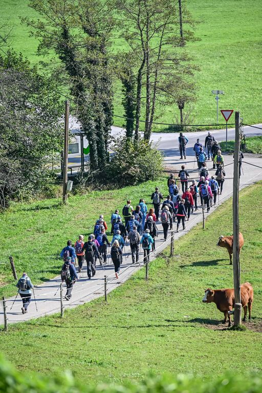 Sledila je pot proti vinskim goricam na Debelem hribu, kjer so jih vinogradniki pogostili s cvičkom Debelohribčkom. Preko Oteč Vrha so prispeli do Temenice, kjer so pod toplarjem na Turistični kmetiji Fajdiga uživali v okusni obari. Zatem je pot vodila proti Letališču Šentvid – tam so se pohodniki srečali s člani letalskega kluba, si ogledali letala ter prikaz padalcev.