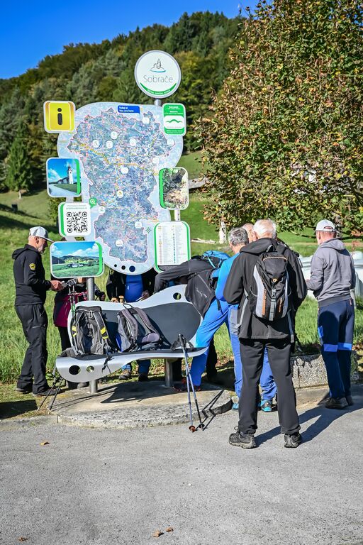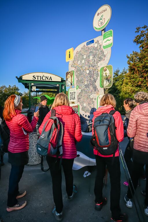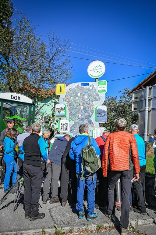 Prvi postanek je bil pri turistično-informativni točki pri tržnici, nato pa so pohodniki nadaljevali pot do info točk v Stično in Šentvida pri Stični. Po krajšem postanku v Bukovici in ogledu Pintarjeve kapelice v Čagoščah jih je pot ponesla do najmanjše krajevne skupnosti naše občine Sobrače.