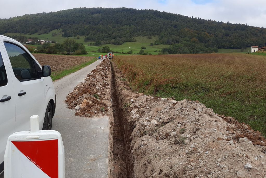 Gradnja optičnega omrežja v naselju Znojile pri Krki.