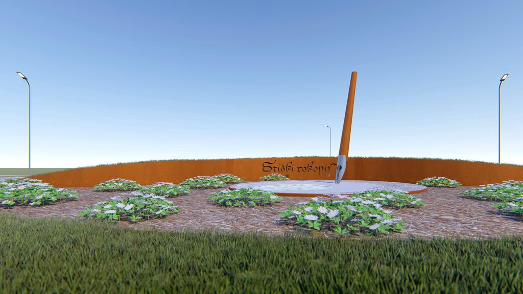 Na natečaju je sodelovalo šestnajst idejnih predlogov, za zmagovalnega pa je bila izbrana rešitev avtorice Dragice Šteh. Zmagovalni predlog predvideva umestitev nalivnega peresa v krožišče, ki simbolizira stičišče, razvoj in željo po napredku. Poleg peresa bo umeščen tudi fragment Stiškega rokopisa iz leta 1428, ki predstavlja temelj slovenske besede in identitete. Okoli krožišča bo cvetlična zasaditev, ki bo simbolično povezana z bližnjo samostansko vrtnarijo.
