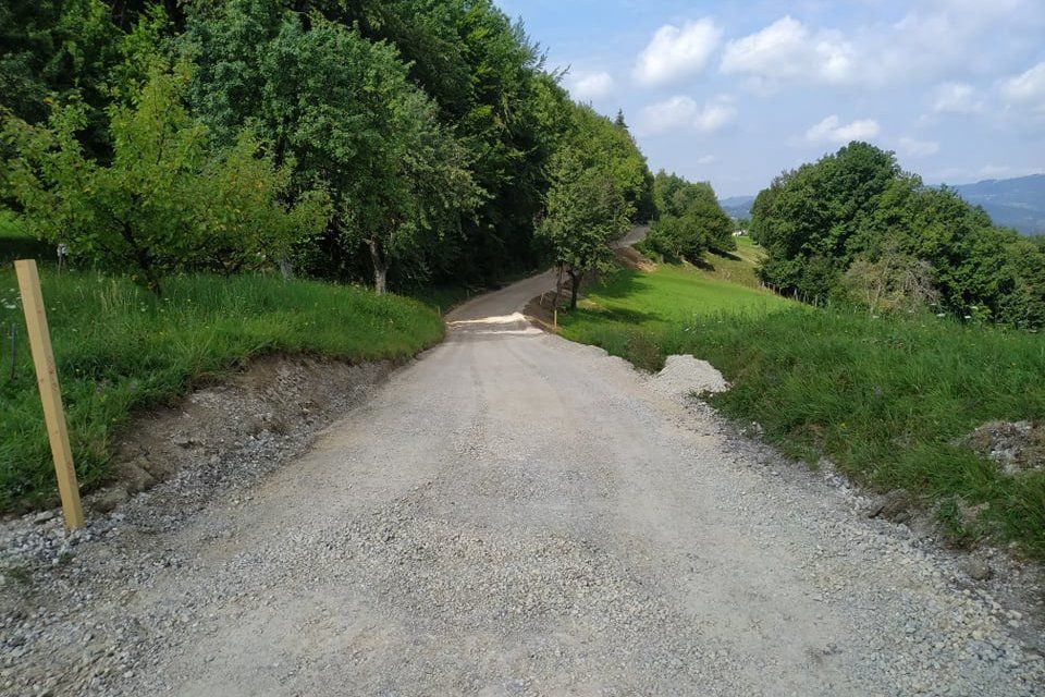 Občina je pri obnovi prisluhnila tudi pobudi in uredila odvodnjavanje z dvema prepustoma ter namestila drenažo. Izjemna pomembnost namestitve prepustov in drenaže se je tako že izkazala v teh dneh, ko prihaja do večjih količin padavin. Cesto se je zaradi dotrajanosti na novo utrdilo in nasulo s peskom, v petek, 14. 8. 2020, pa tudi na novo asfaltiralo. Dela je v celoti izvajalo podjetje Mapri Proasfalt, d.o.o. V teh dneh se urejajo na odseku urejajo še bankine in brežine, nato pa bo cesta ponovno odprta.