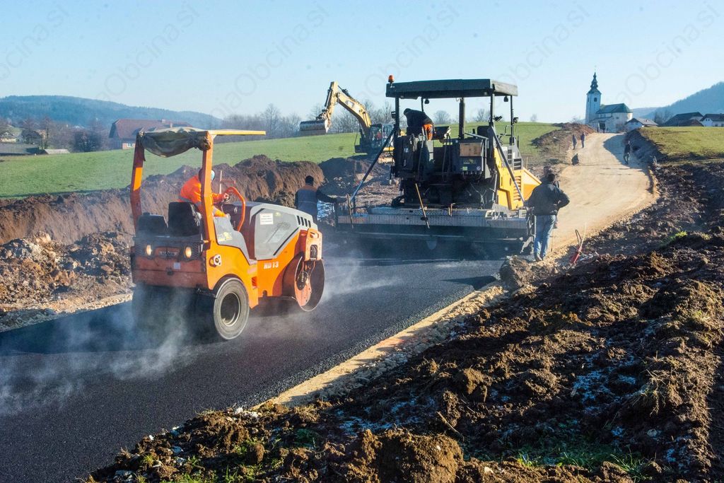 V dolžini cca 600 metrov je položene asfaltne prevleke na cestnem odseku Krka – Gradiček, kjer je v fazi popolna rekonstrukcija in razširitev ceste od krške cerkve do mostička pri izviru potoka Poltarica. Preostanek del ceste bo asfaltno plast dobilo spomladi oziroma, ko bodo obratovanjem začele delovati asfaltne baze.