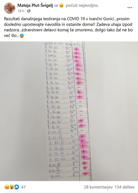 Na družbenem omrežju Facebook je še posebej skrb vzbujajoča objava oziroma zapis pod fotografijo zdravstvene uslužbenke Zdravstvenega doma Ivančna Gorica o ponovnem porastu okužb v naši občini. Vse občane poziva k doslednemu upoštevanju navodil. Le s tem bomo olajšali delo zdravstvenemu osebju, ki komaj še zmorejo obvladati trenutno situacijo.