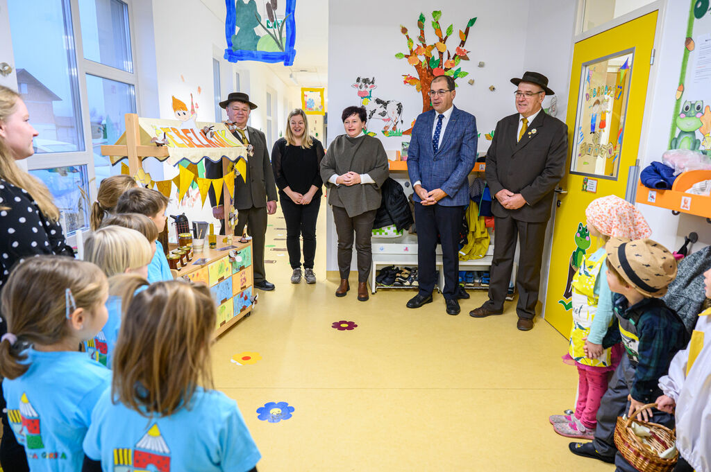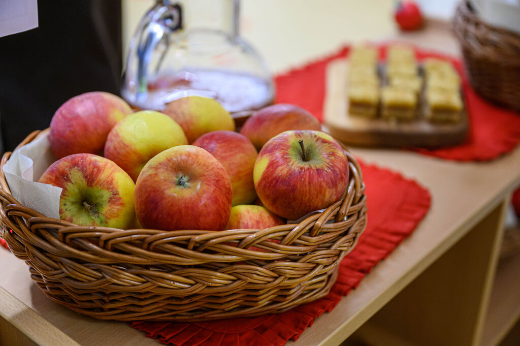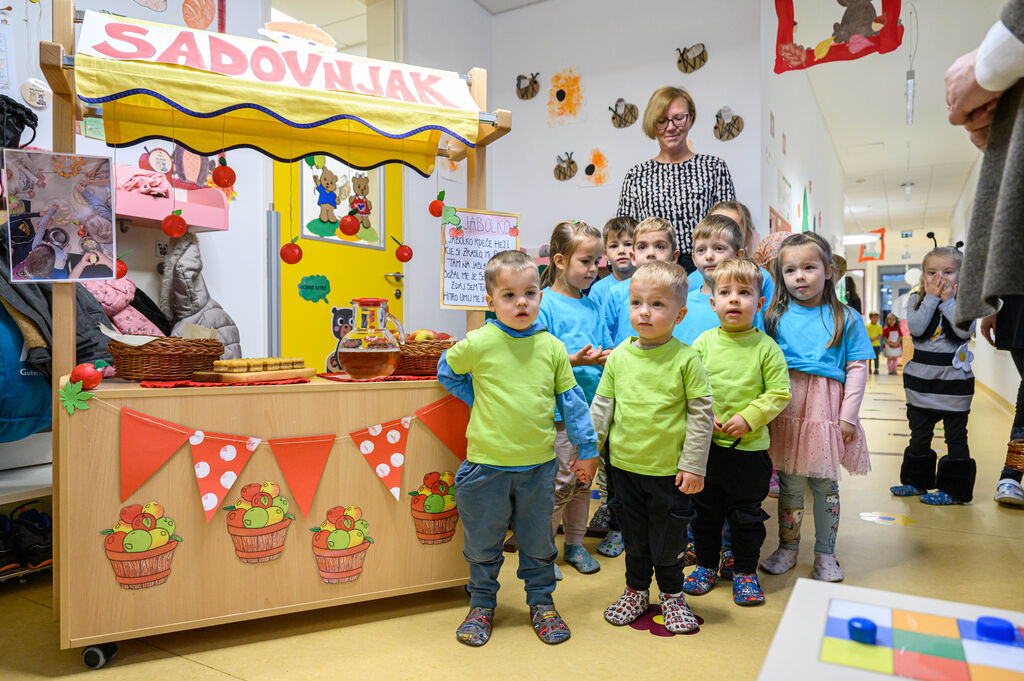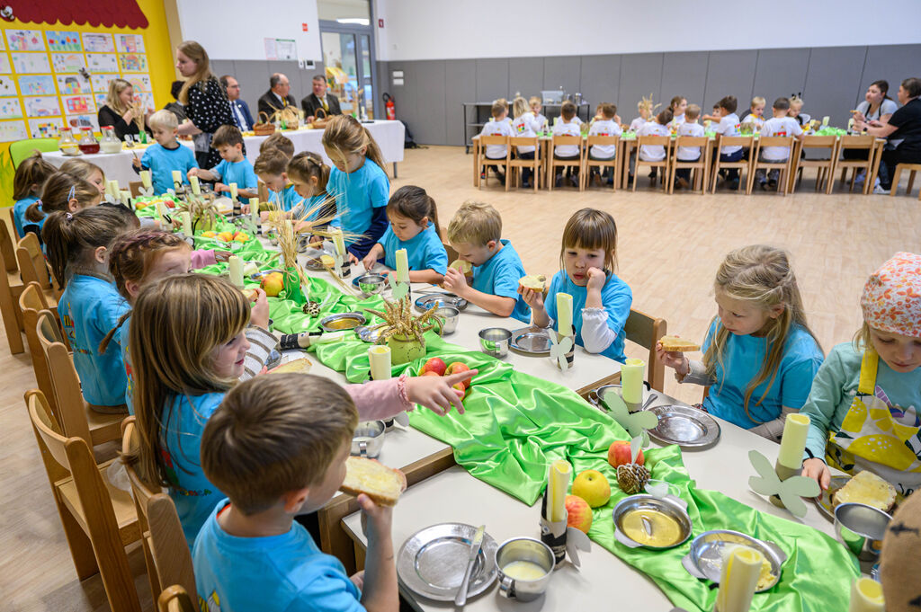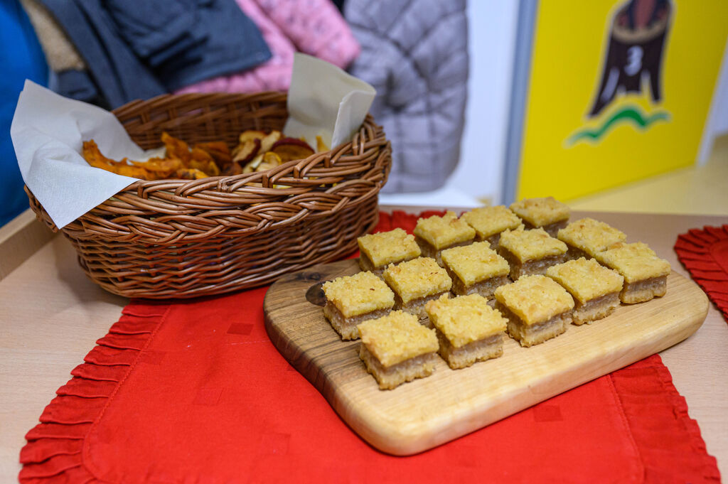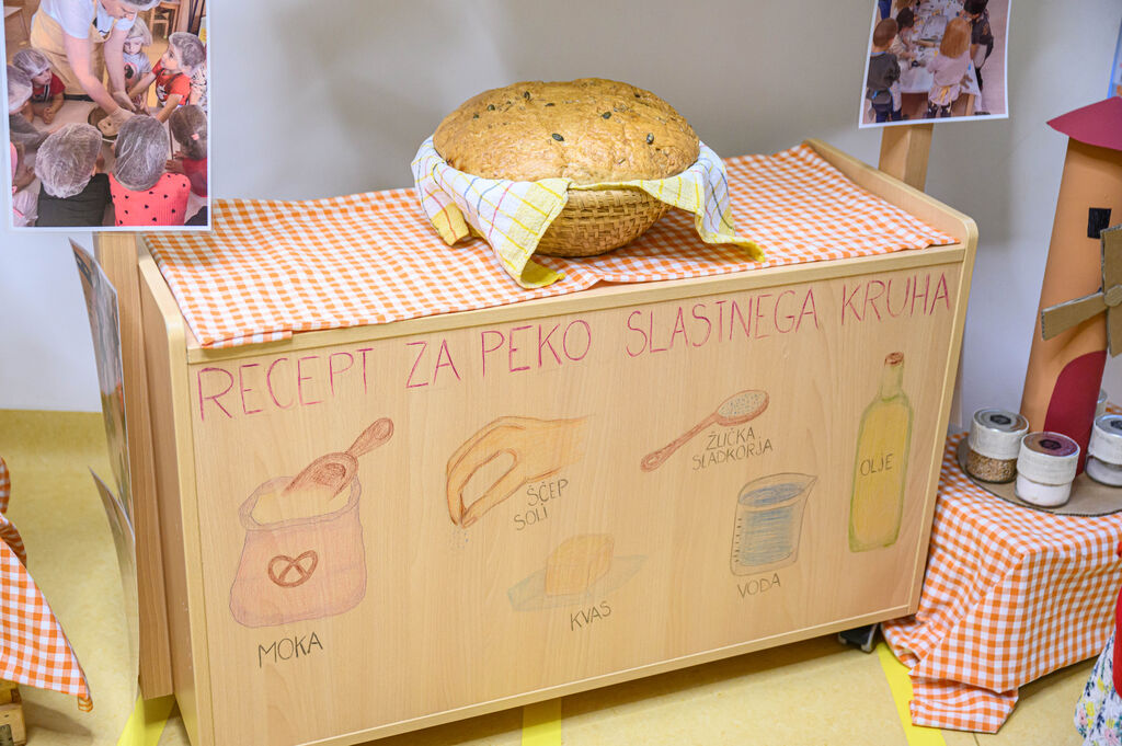 Na lepo pripravljenih mizah so goste pričakale dobrote Tradicionalnega slovenskega zajtrka: domač kruh, maslo, med, mleko in jabolko. Mleko je priskrbela kmetija Kotar, maslo kmetiji Zabukovec in Kotar, jabolka kmetija Bregar, med pa Čebelarstvo Ceglar. Kruh in piškote pa so pripravili v vrtcu.