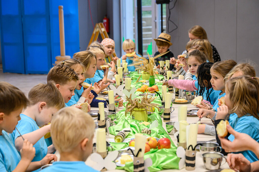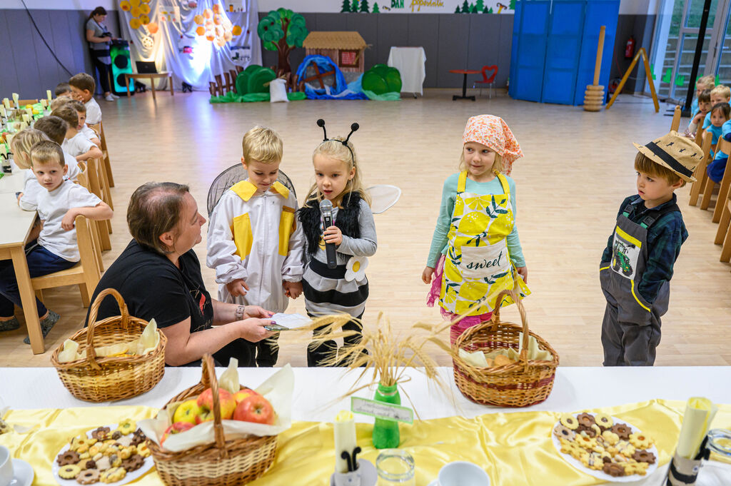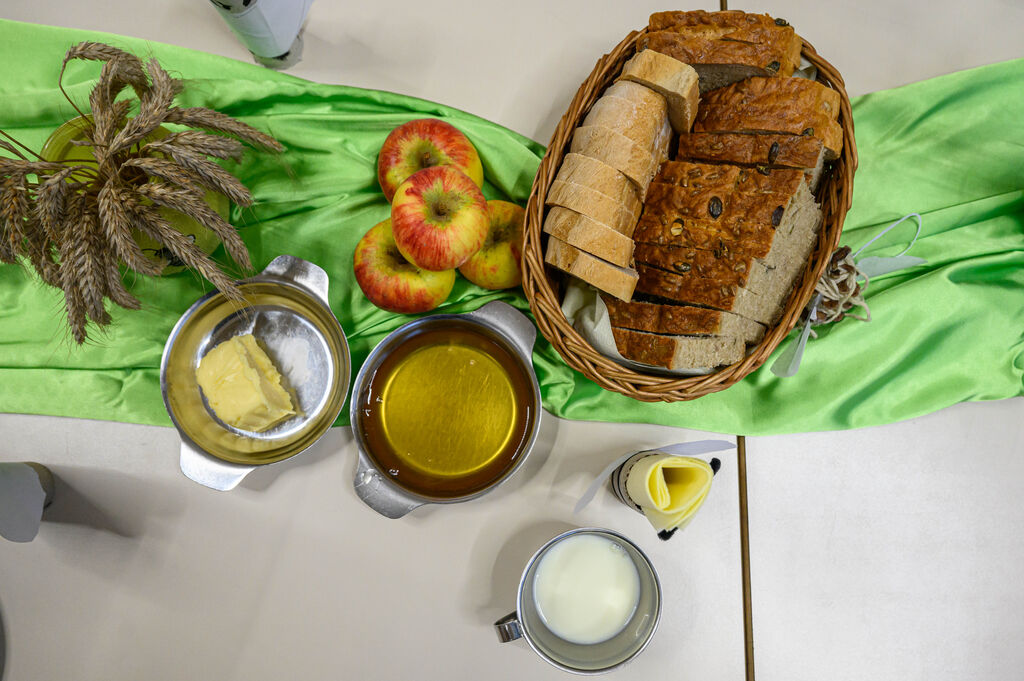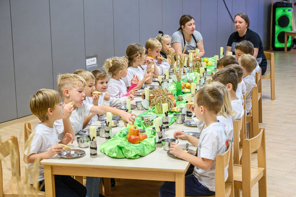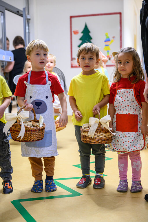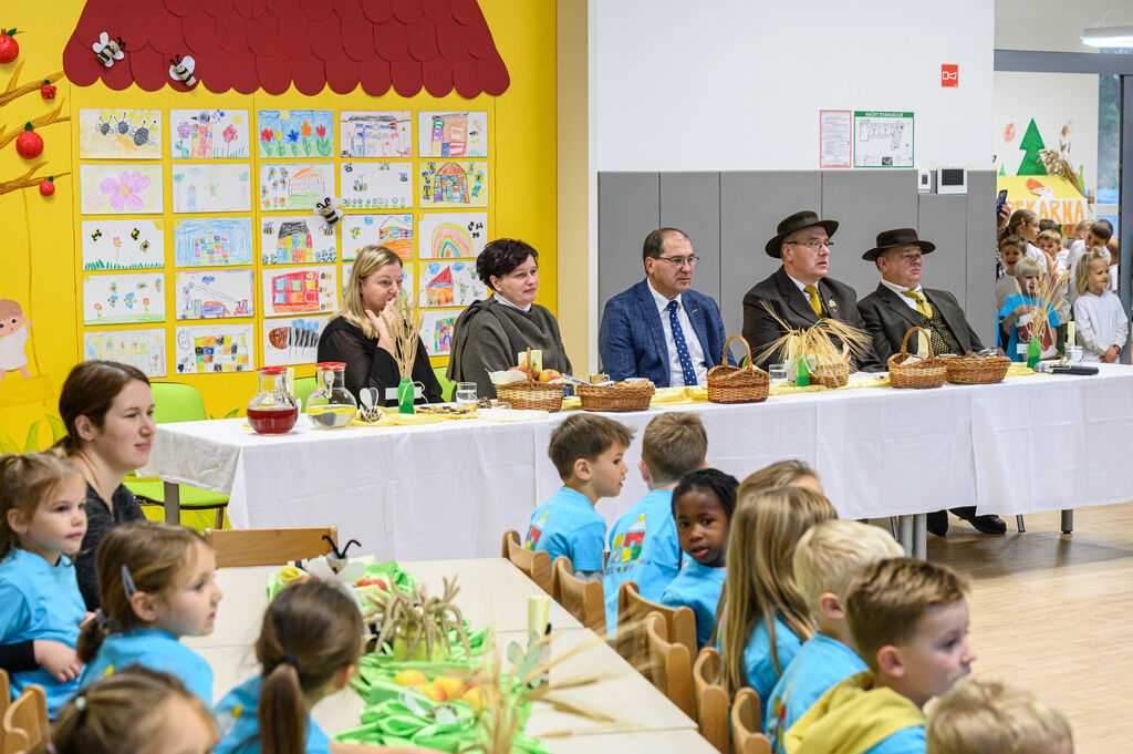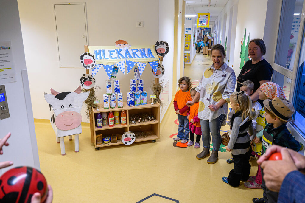 Na lepo pripravljenih mizah so goste pričakale dobrote Tradicionalnega slovenskega zajtrka: domač kruh, maslo, med, mleko in jabolko. Mleko je priskrbela kmetija Kotar, maslo kmetiji Zabukovec in Kotar, jabolka kmetija Bregar, med pa Čebelarstvo Ceglar. Kruh in piškote pa so pripravili v vrtcu.
