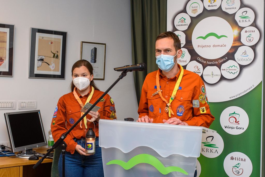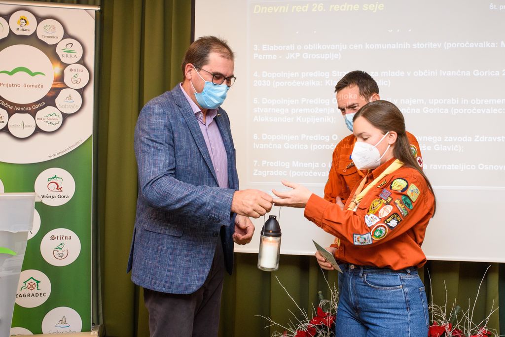 Župan Dušan Strnad je skupaj s člani Občinskega sveta Občine Ivančna Gorica pred začetkom 26. redne seje, ki je potekala v sredo, 22. 12. 2021, sprejel grosupeljske skavte, ki so prinesli Luč miru iz Betlehema. Letošnja poslanica z geslom »ČLOVEK, NE JEZI SE« nas opominja, da je sočlovek naše največje bogastvo.