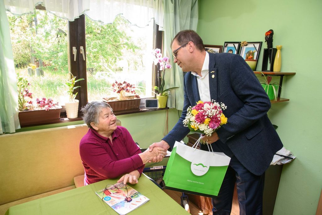 Župan Dušan Strnad je ob 90. rojstnem dnem voščil tudi Albini Strmole iz Malega Hudega. Ob častitljivem jubileju ji je izročil šopek rož in ji zaželel še veliko zdravja.
