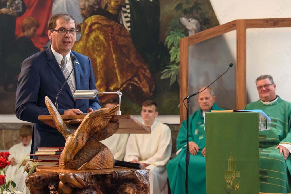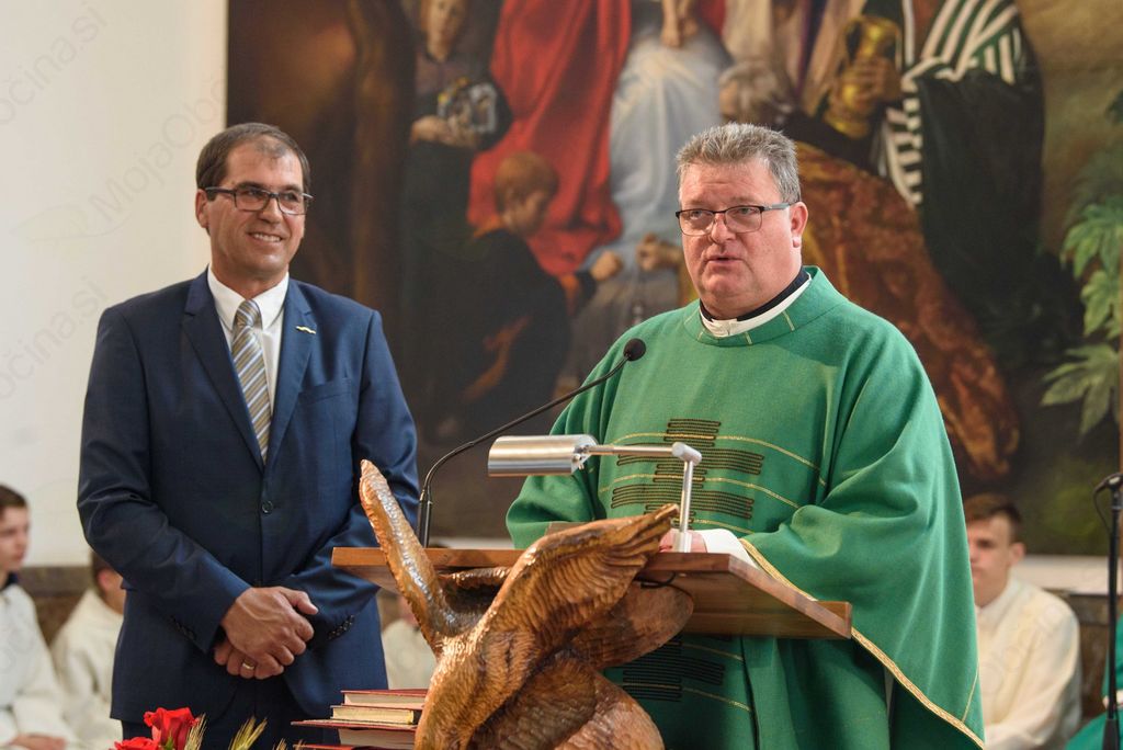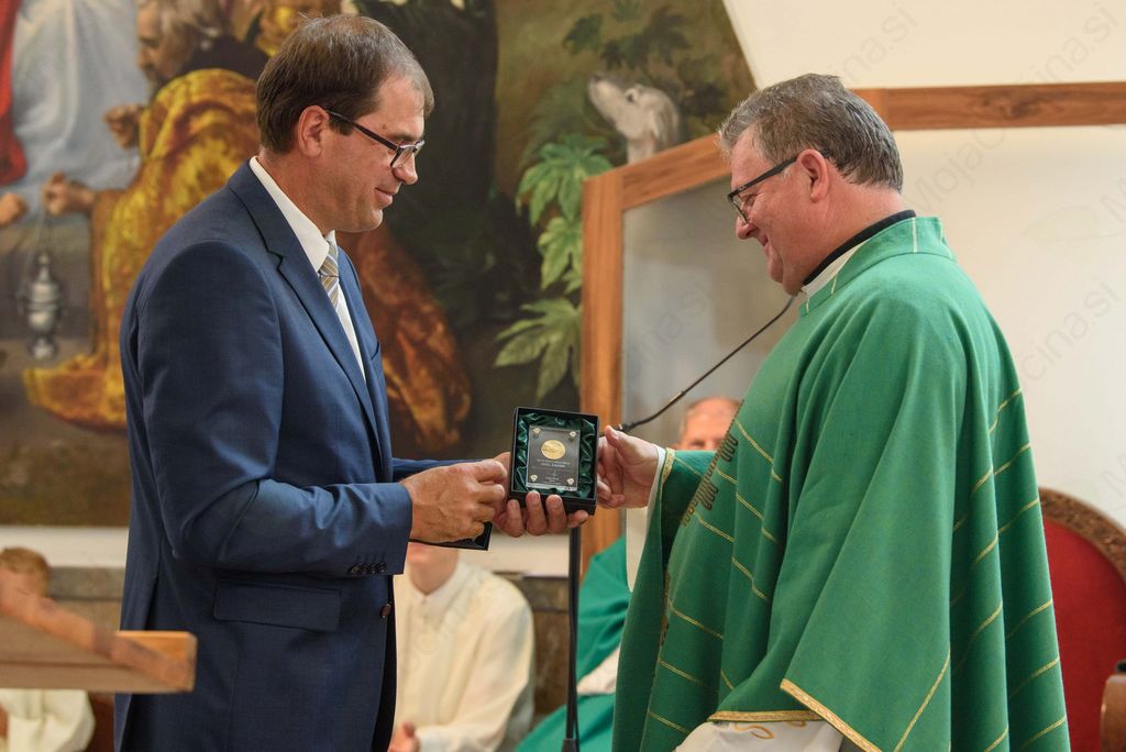 »Na splošno je čudovit človek, ki drži besedo in zna svoj zgled in osebnost prenašati na druge.« Župan je poudaril, da je največji dar tudi to, da ima Ivančna Gorica letos novomašnika Primoža. Ob koncu svojega govora se je g. župniku zahvalil s spominskim kovancem Prijetno domače.