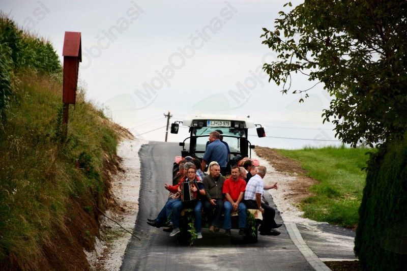 S tem slovesnosti še ni bilo konec, saj je sledila še krstna vožnja po novi cesti z veliko traktorsko prikolico, ki so jo posebej za to priložnost pripravili na županovi domačiji. Seveda ni manjkala tudi harmonika na katero je igral Pirc Luka. Po dveh »promocijskih« vožnjah je sledila še pogostitev za katero so poskrbeli krajani in pridni kriški gasilci.