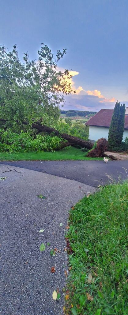 Nič kaj lepi pogledi na fotografije posledic neurja, ki je zajelo območje občine Ivančna Gorica 21. julija. Najhuje je bilo na območju Krajevnih skupnosti Šentvid pri Stični in Temenica, kjer je močan veter odkrival strehe na stanovanjskih hišah in gospodarskih poslopjih, podiral drevesa in povzročil obsežno materialno škodo. Popolnoma je bil uničen tudi šotor priznanega gostinskega lokala.