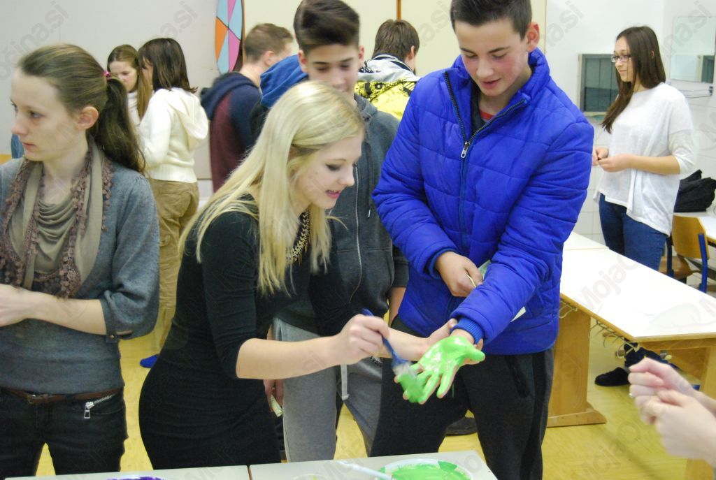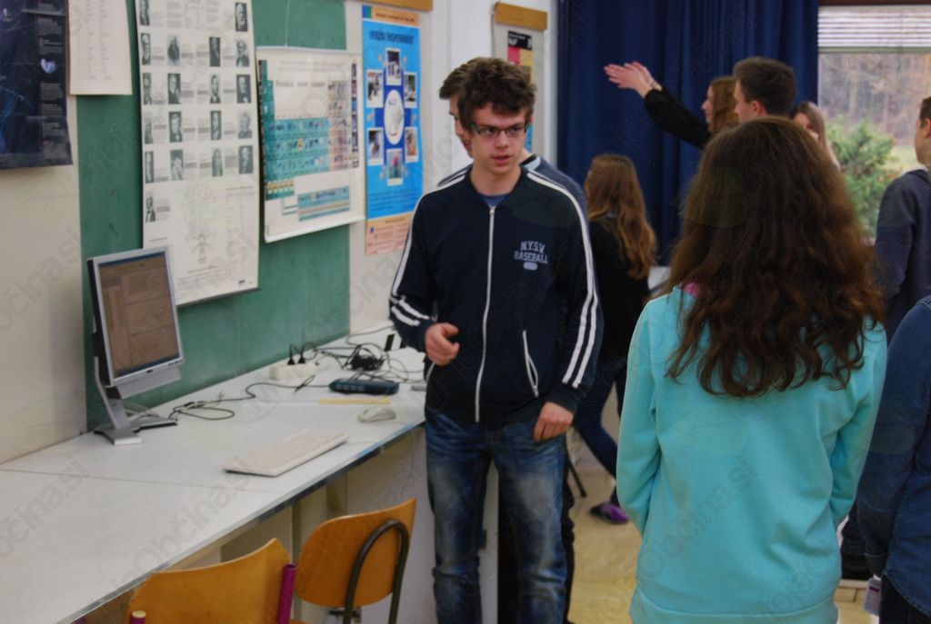 Po tem skupnem delu so se učenci razdelili v skupine: tisti, ki jih zanima program ekonomski tehnik, so si ogledali učno firmo, drugi so sodelovali pri poskusih pri fiziki in kemiji, spet tretji so se udeležili angleško-španske ali angleško-nemške ure. Ogledali so si tudi prostore srednje šole, navdušeni pa so bili nad dijaško sobo, posebnem prostoru, namenjenem samo dijakom (vstop profesorjem je – skorajda – prepovedan), odprli smo jo v začetku novembra. Soba je namenjena počitku, učenju, pisanju nalog … Med obiskom osnovnošolcev pa je bila zelo zasedena (predvsem mesta za počitek).