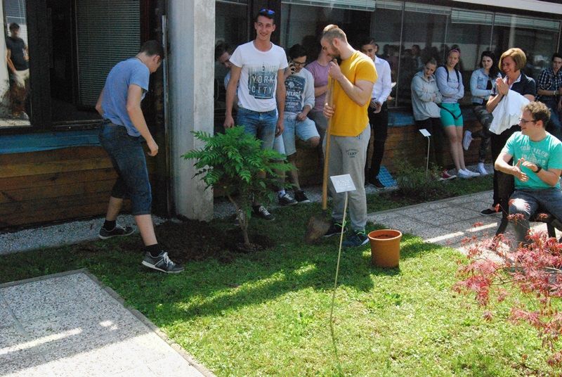 Bodoči maturanti so v ponedeljek, 22. maja, najprej v atriju šole kot simbol nadaljnje rasti in zorenja posadili drevo, kar je zadnja leta na naši šoli postalo že tradicionalno. Nastaja lep spominski vrtiček s tablicami, ki povedo, katera generacija je kaj posadila.