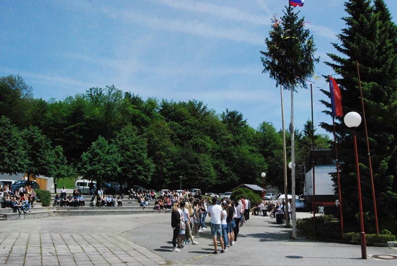 Že na predvečer zadnjega dne pouka v 4. letniku so maturantje zanesljivo in kot pravi profesionalci slovesno postavili dva precej visoka mlaja, ob katerih so se še zadnjič družno poveselili.