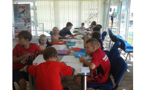 Zadnji dan, ki je bil deževno obarvan, pa smo izkoristili urejene klubske prostore nogometne šole za umetniško ustvarjanje, kartanje enke, igranje twisterja, ogled risanega filma in podobno.