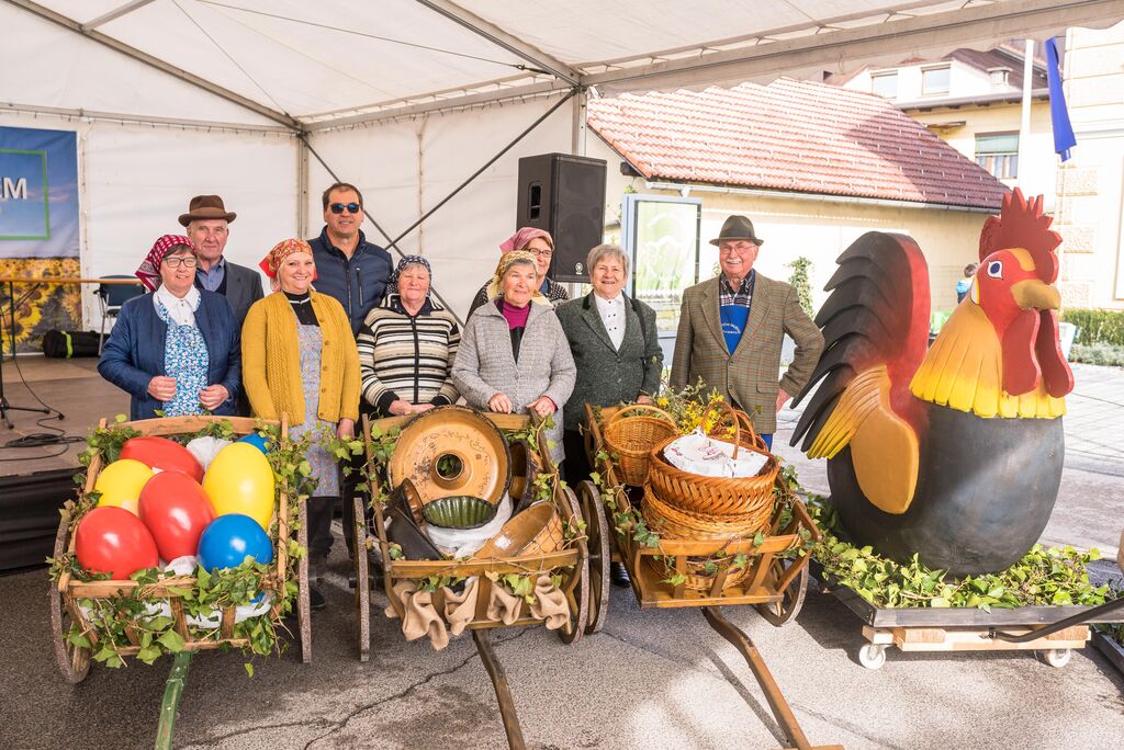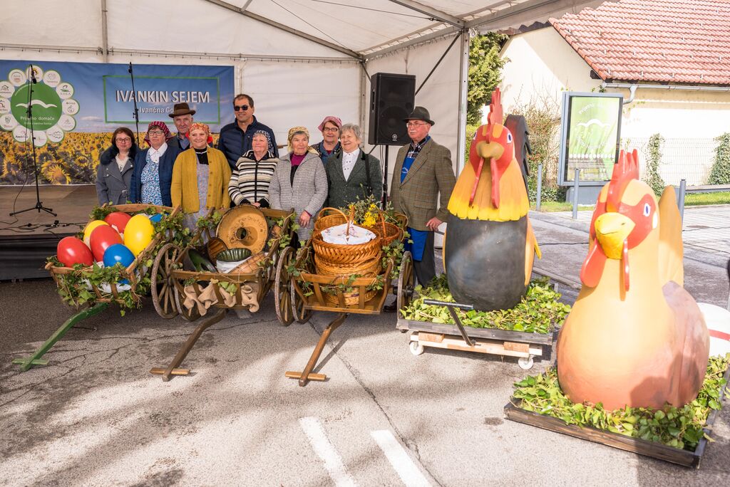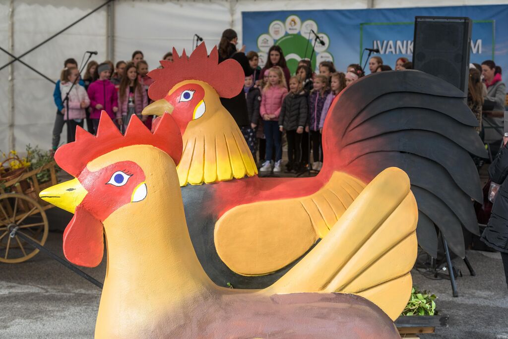 Tudi letošnji Ivankin sejem so s svojim prihodom popestrili člani Turističnega društva Ivančna Gorica, ki so na »kulcah« pripeljali in na ogled postavili veliko maketo t. i. ivanškega petelina, kokoši, piščancev in velikonočne pirhe.