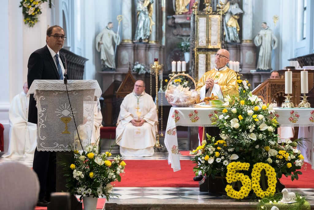 V spomin na veličasten dogodek je župan zlatomašniku v imenu občank in občanov izročil spominsko fotografijo Kriške vasi, v spomin na njegov rojstni kraj. Ob 50 – letnici duhovništva so čestitke izrekli še njegovi sorodniki, čebelarji ČD Stična, sošolci stiške gimnazije, farani župnije Stična in zakonca Bergmann iz pobratene nemške občine Hirschaid. V pridigi je duhovniško pot orisal župnik Župnije Višnja Gora, Slavko Judež.