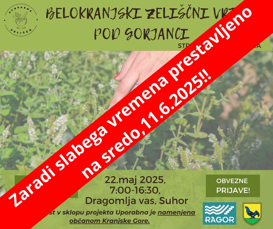 V sklopu projekta Uporabna zelišča organiziramo strokovno ekskurzijo v Belo krajino. Projekt Uporabna zelišča sofinancira Občina Kranjska Gora. Udeležba je brezplačna za občane Kranjske Gore. Število prostih mest je omejeno!!