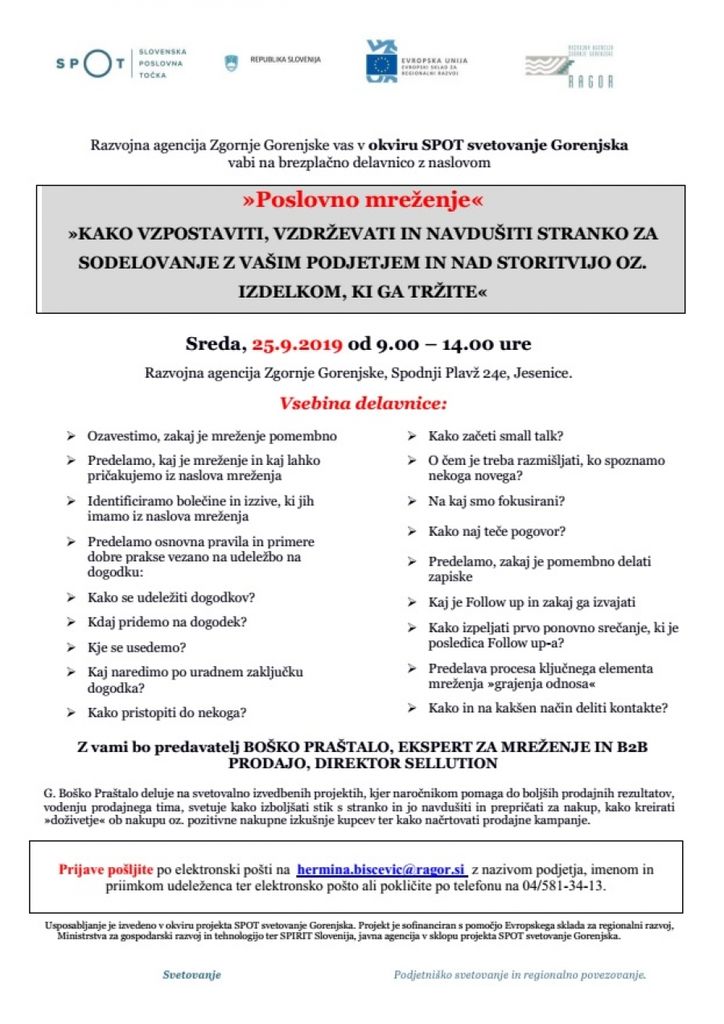 Več informacij je na priloženem vabilu in na: hermina.biscevic@ragor.si, (04) 581 34 13