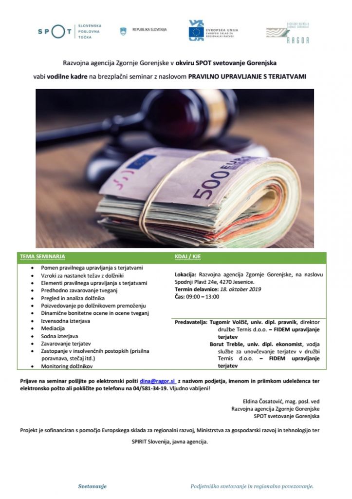 Brezplačna delavnica: "Pravilno upravljanje s terjatvami"