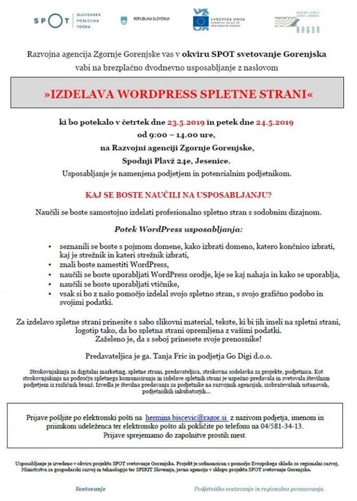 Brezplačno dvodnevno usposablanje >>Izdelava WordPress spletne strani