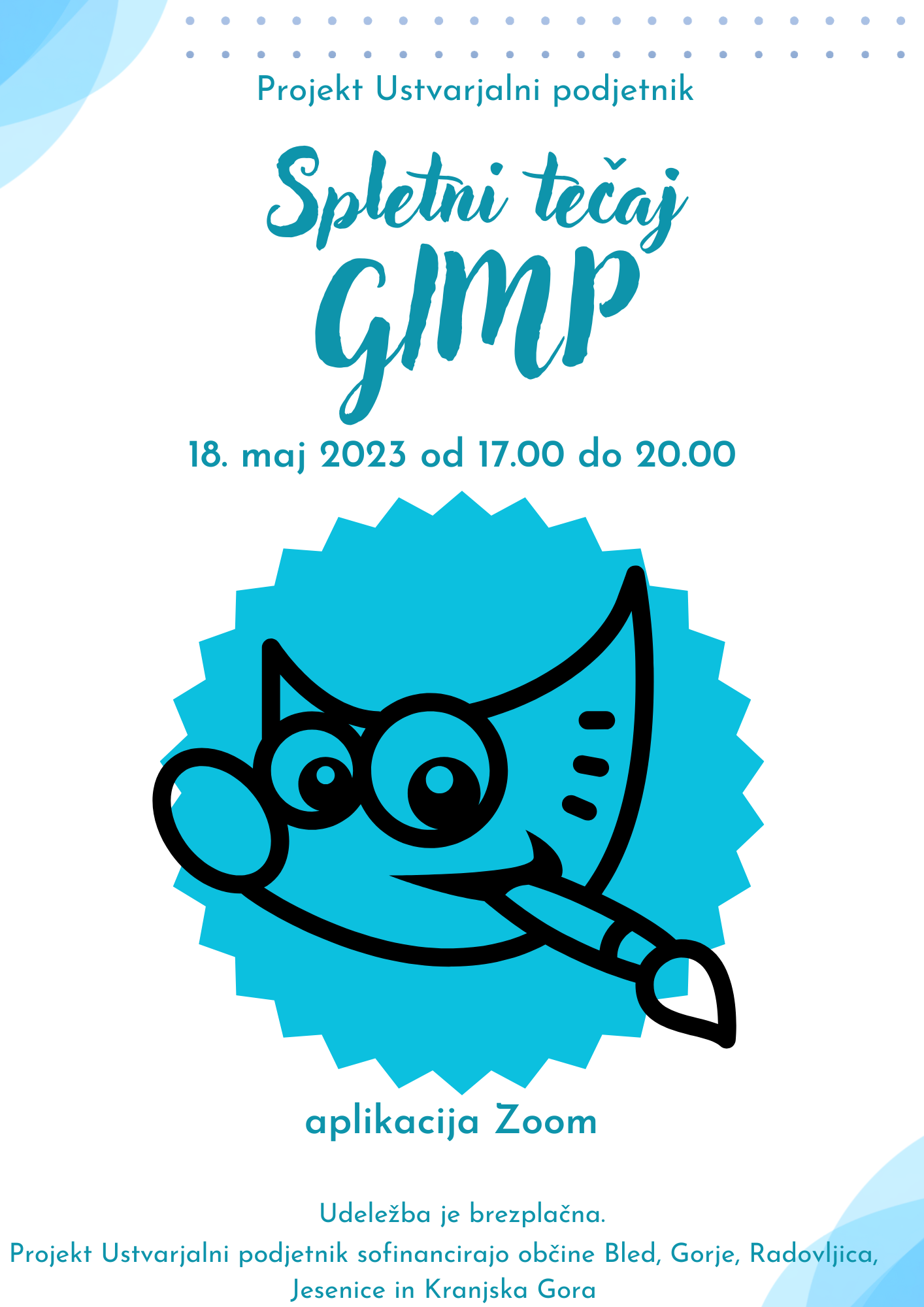 V četrtek, 18.5.2023 bo od 17.00 do 20.00 potekala Zoom spletna delavnica >> Gimp << z Leo Trseglav Rabič iz podjetja Unicorn United d.o.o.