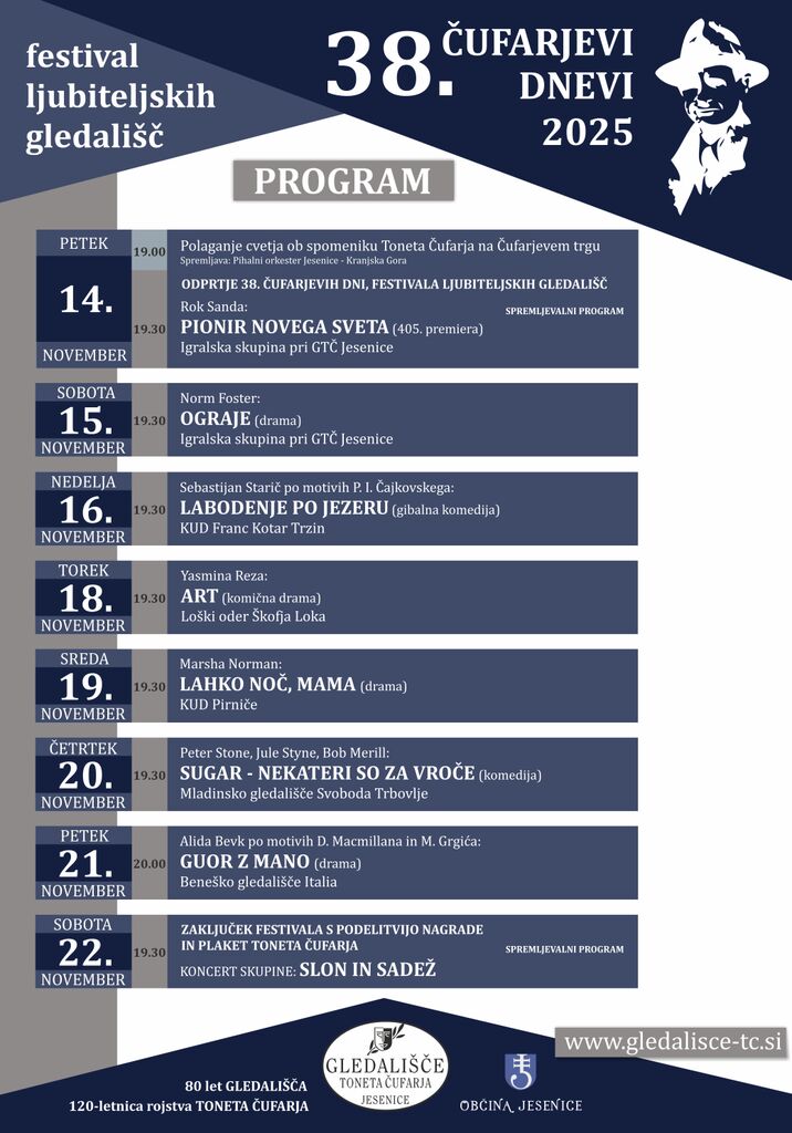 14. novembra se začenjajo 38. Čufarjevi dnevi, festival ljubiteljskih gledališč, ki bo trajal od 14. do 22. novembra.