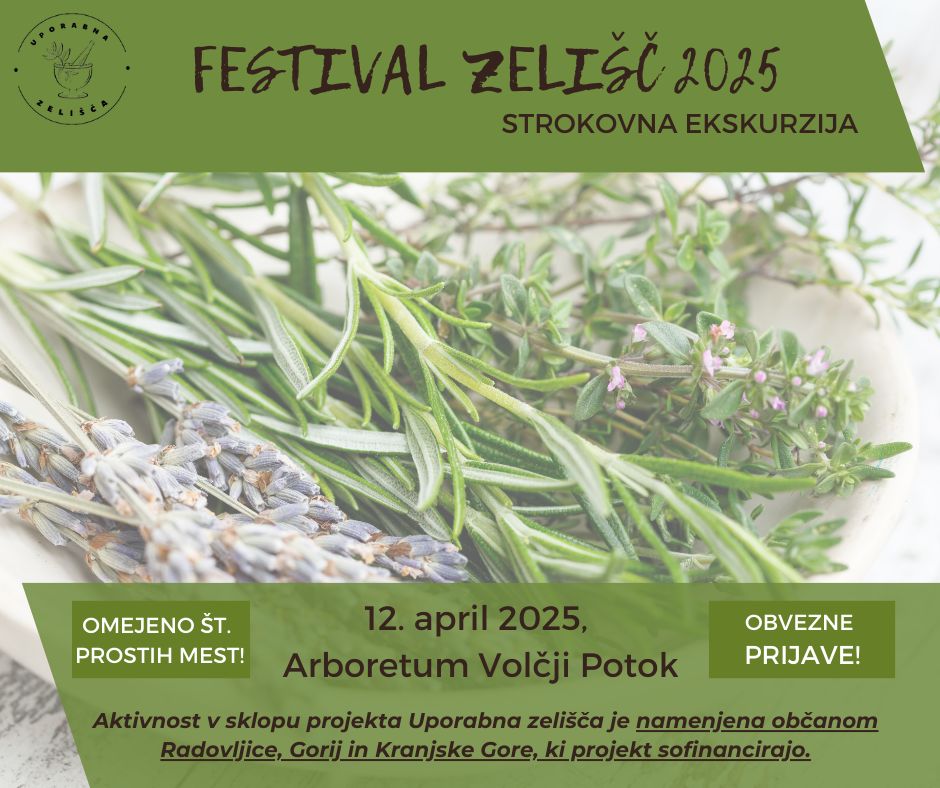 V sklopu projekta Uporabna zelišča organiziramo strokovno ekskurzijo na Festival Zelišč 2025. Vabljeni so vsi zeliščarji in tisti, ki jih zelišča zanimajo. Projekta Uporabna zelišča sofinancirajo Občine Radovljica, Občina Gorje in Kranjska Gora. Udeležba je brezplačna za občane Radovljice, Gorij in Kranjske Gore. Število prostih mest je omejeno!!