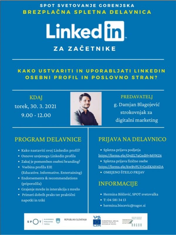 - Info?:Hermina Biščević, SPOT svetovalka, T: 04 5813413