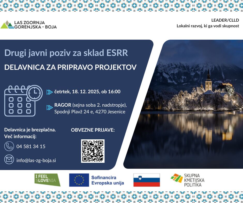 Vabljeni na delavnico za pripravo projektov v okviru 2. javnega poziva LAS Zgornja Gorenjska – BOJA za sklad ESRR.