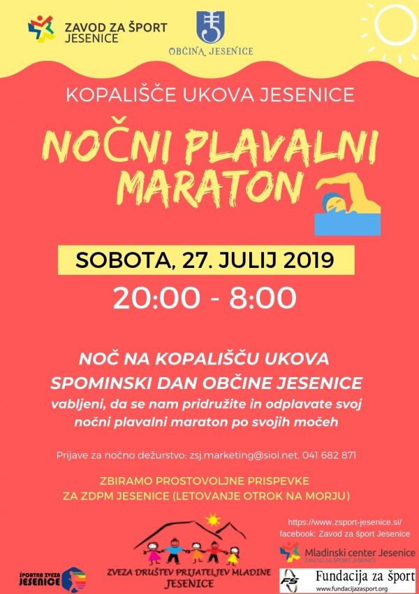 Spominski dan občine Jesenice - Noč na kopališču Ukova 2019: Nočni plavalni maraton