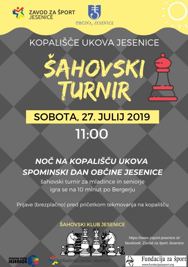 Spominski dan občine Jesenice - Noč na kopališču Ukova 2019: Šahovski turnir