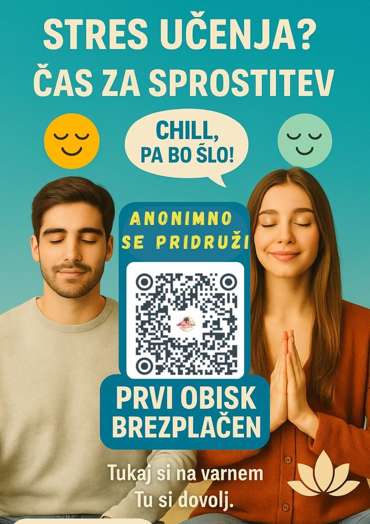 P.S. Če nisi študent ali dijak, še vedno lahko pomagaš! Včasih je tisto, kar potrebuje nekdo, samo malo spodbude. Če poznaš koga, ki bi mu SOS sproščanje koristilo, deli to objavo. Tvoja majhna gesta lahko nekomu pomaga prebroditi stres, najti motivacijo in doseči boljše rezultate. S tem, ko deliš, pomagaš nekome najti mir in podporo, ki jo potrebuje. Skupaj ustvarjamo varno, podporno skupnost, kjer si lahko vsak pomaga in raste.