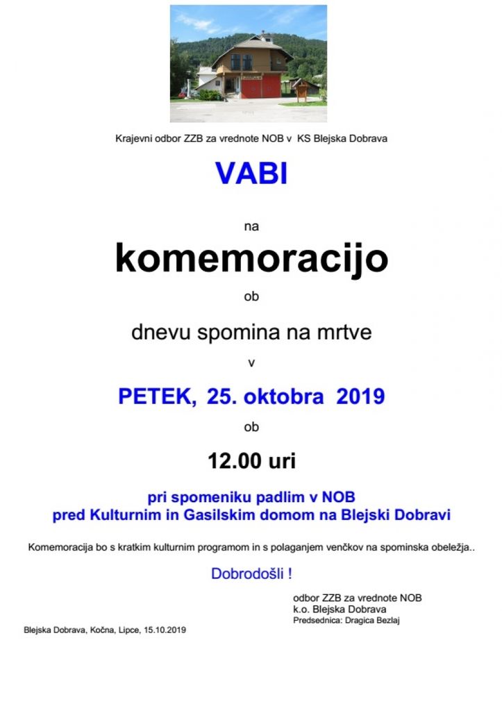• Kje?:Pri spomeniku padlim v NOB pred Kulturnim in gasilskim domom na Blejski Dobravi