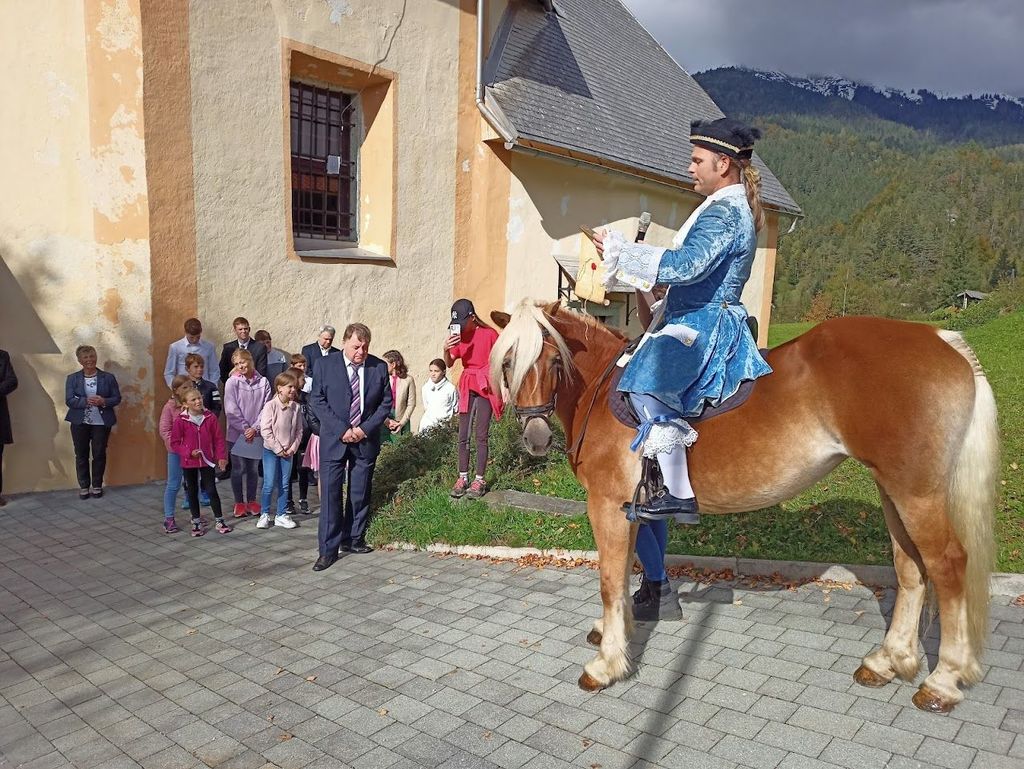 Slovesnost se je začela, ko je domačin Miha Smolej, v vlogi in kostumu Horacija Buccellenija, prijahal pred cerkev s konjem in prebral njegov razglas o postavitvi temeljnega kamna za cerkev. Razglas je bil zahvala, ker so rudarji odkrili novo žilo železove rude. Med slovesnostjo so zapeli člani Kvinteta Vintgar z Blejske Dobrave, zatem pa je sledila zahvalna sveta maša v cerkvi, ki jo je daroval upokojeni beograjski nadškof Stanislav Hočevar. Sodelovale so tri skupine pritrkovalcev – domačini, ter pritrkovalci s Koroške Bele in Blejske Dobrave.