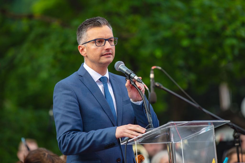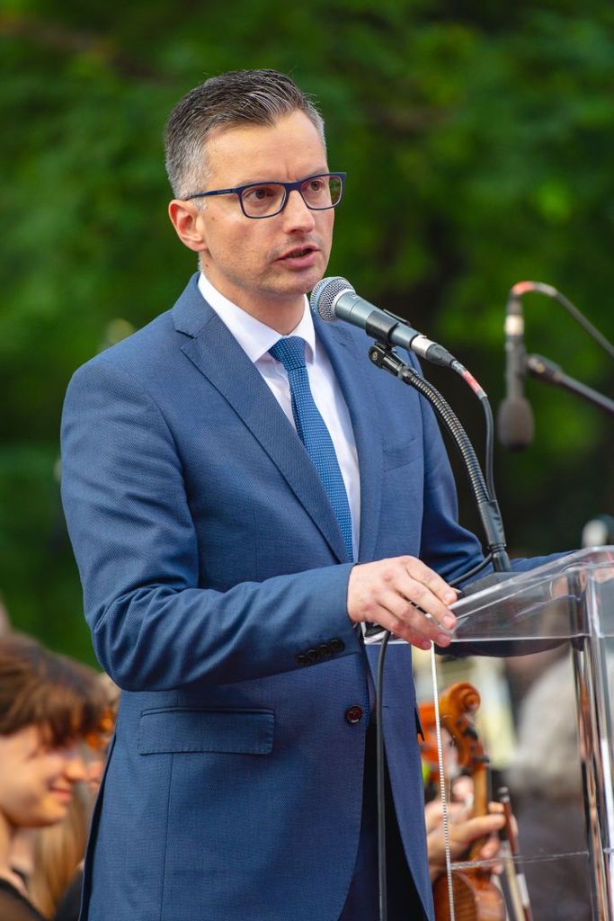 Kot slavnostni govornik je zbrane nagovoril minister za obrambo Marjan Šarec, ki je v svojem nagovoru izpostavil snovanje lastne države, nekatere pomembne mejnike in veterane, ki so nam priborili lastno državo. "20. stoletje je Slovencem postreglo z mnogimi preizkušnjami. Tako kot se je začelo z Rudolfom Maistrom, ki nam je priboril SV del Slovenije, tako se je veličastno končalo z veterankami in veterani vojne za Slovenijo, ki so nam priborili samostojno državo," je povedal minister Šarec. V nadaljevanju je izpostavil tudi to, da moramo praznik svoje države praznovati ponosno. "Vsaka žrtev, ki je padla za samostojno državo, nas spomni, da moramo ponosno izobesiti zastavo, da moramo ponosno praznovati praznik. To smo dolžni njim, ki so darovali največ, kar so imeli – svoja življenja. Za seboj so pustili družine in sanje, ki so jih imeli. V 30 letih samostojne Slovenije zagotovo ni bilo vse idealno. Vendar nas to ne sme odvrniti, da ne bi ponosno praznovali. Kakšno je in bo 21. stoletje, je odvisno od nas samih. Imamo demokratični sistem, volimo svoje predstavnike. Smo del mednarodnih integracij, pred kratkim smo dobili tudi priznanje kot nestalna članica Varnostnega sveta. Nikjer ni vse idealno, vendar pa se moramo truditi za boljše odnose, razvoj, priznavanje pravic in sobivanje," je še povedal minister Šarec.