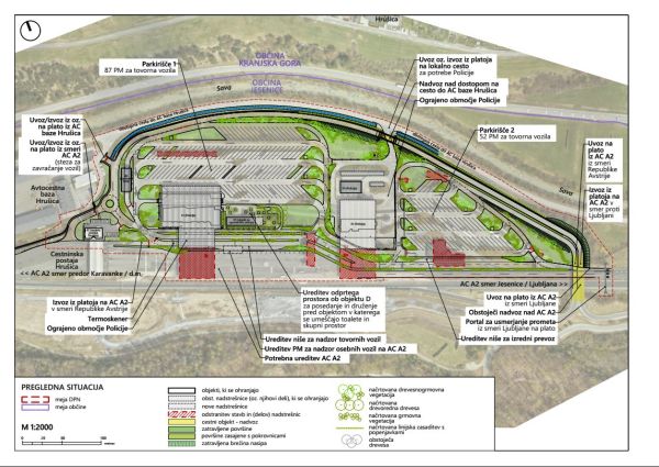 Celotno območje obstoječega platoja Karavanke bo preurejeno. Nekateri objekti bodo porušeni, ohranjeni pa bodo objekti cestninske postaje Hrušica, objekt avstrijske kontrole, špedicije in objekt Slovenske policije. Izvedena bo nova prometna ureditev, urejene bodo površine za mirujoči promet, križišča, priključki in druge infrastrukturne ureditve. Urejeni bodo tudi dostopi do avtoceste v smeri Republike Avstrije, dostop do platoja iz avtocestne baze in dostop do Policijske postaje Jesenice.