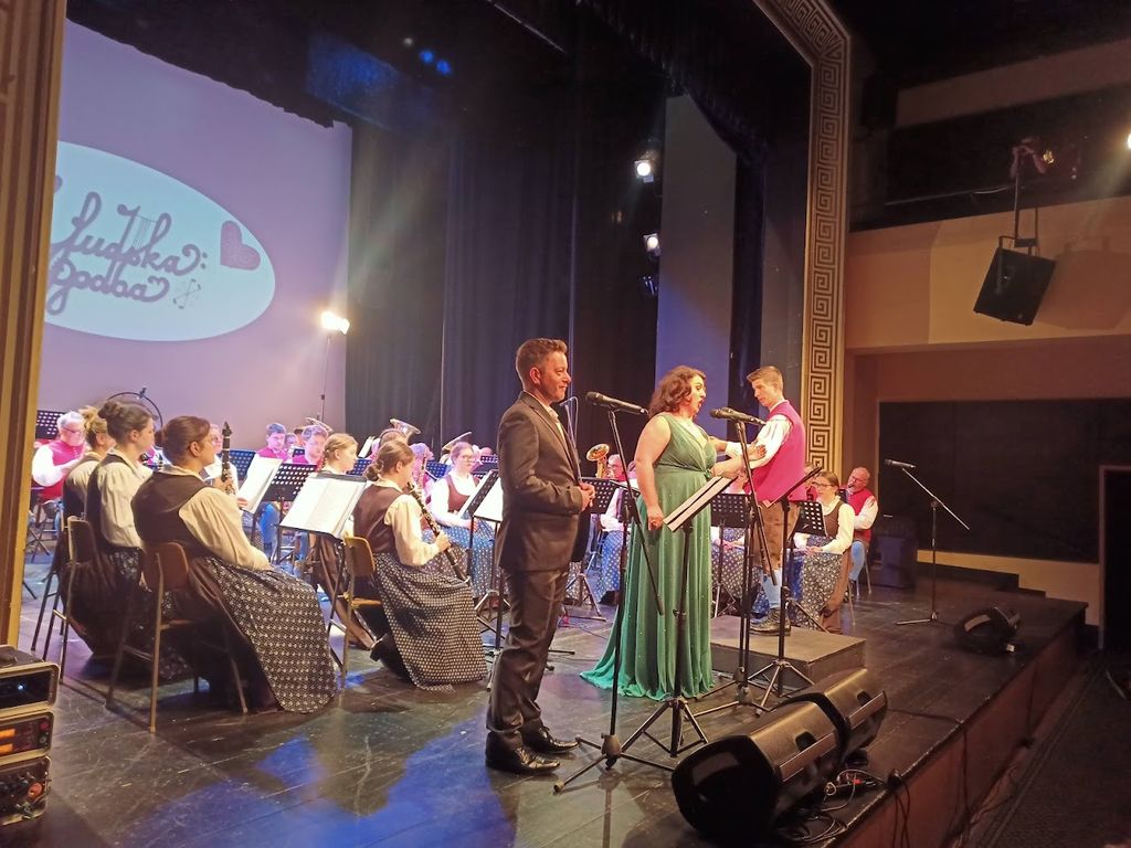 Člani Pihalnega orkestra Jesenice – Kranjska Gora so v nedeljo, 18. maja, v dvorani Gledališča Toneta Čufarja na Jesenicah na samostojnem koncertu predstavili skladbe z zgoščenke Ljudska z(g)odba. Zahteven projekt je zasnoval njihov umetniški vodja in dirigent Dejan Rihtarič.