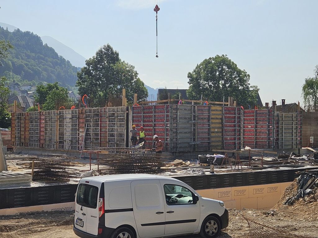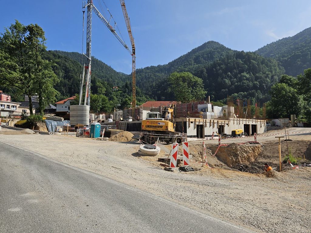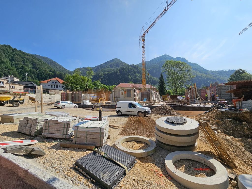 V tem času izvajalec že gradi pritlično etažo stanovanjskih dvojčkov; celotno konstrukcijo naj bi dokončal predvidoma do konca septembra.