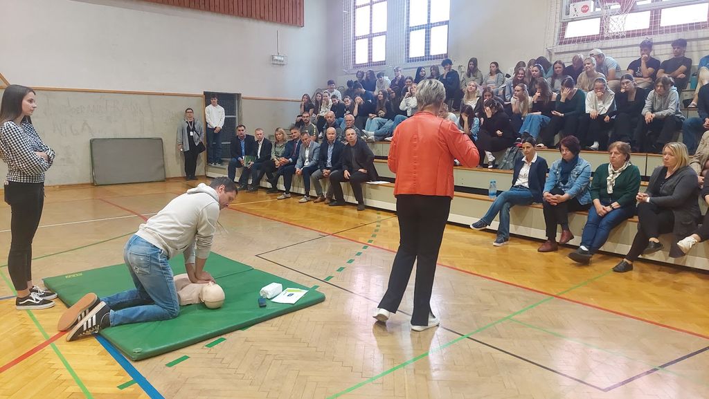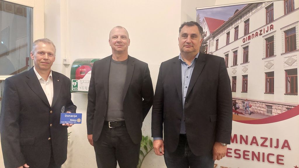 Enega od defibrilatorjev je Gimnaziji Jesenice podaril Rotary klub Bled. Ob simbolični predaji, ki sta se je udeležila tudi župan Peter Bohinec in poveljnik Civilne zaščite Igor Arh, so na šoli pripravili predstavitev temeljnih postopkov oživljanja in uporabe defibrilatorja. Prikaz je izvedla zdravnica iz Zdravstvenega doma Tržič.