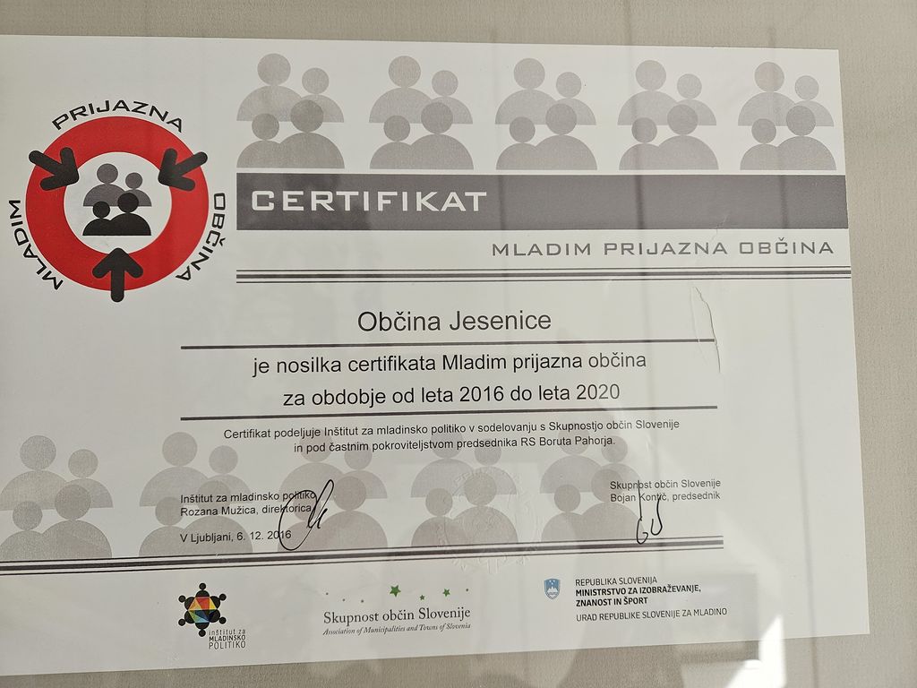 Občina Jesenice je certifikat prvič prejela leta 2016. Leta 2020 ji ga je Inštitut za mladinsko politiko podaljšal za štiri leta, tokrat pa bo veljaven do leta 2028.