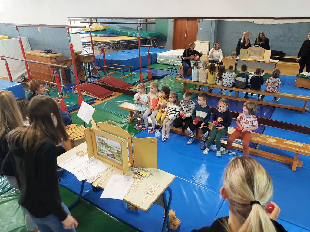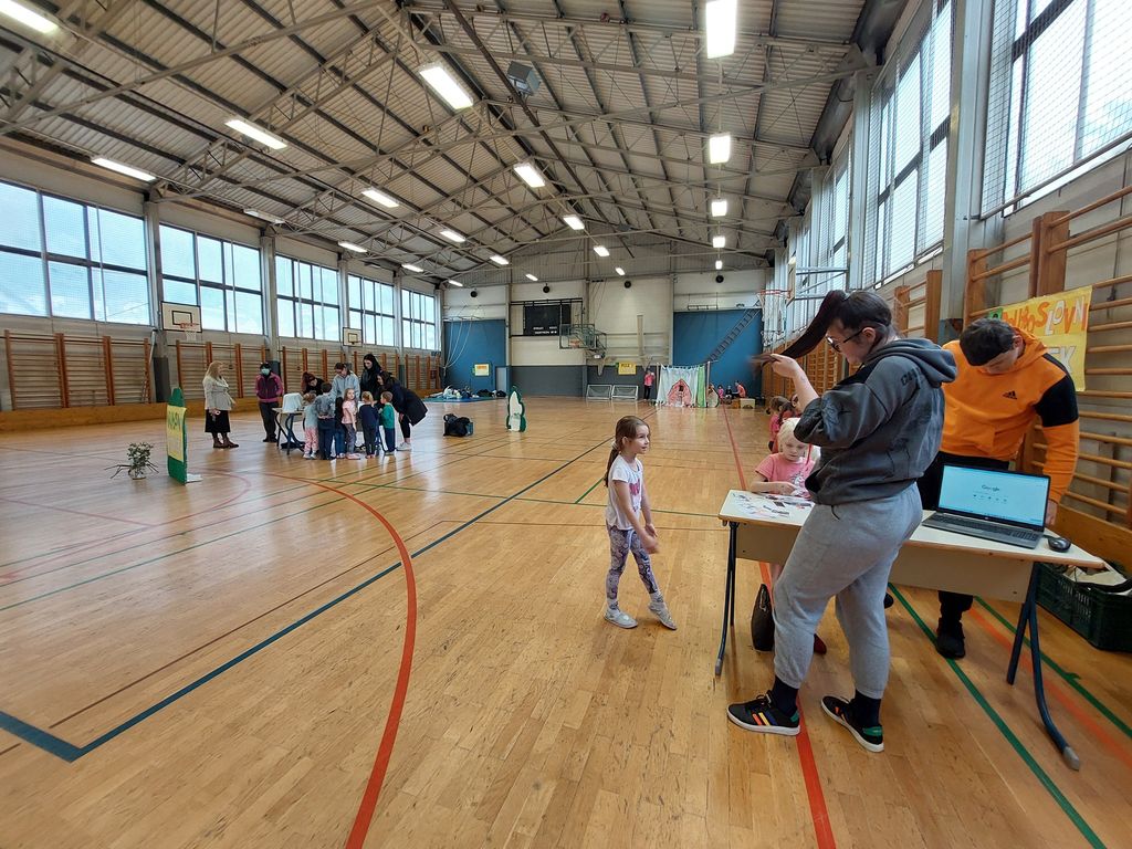 Prijetno druženje s 60 otroki je potekalo v veliki telovadnici Srednje šole Jesenice.