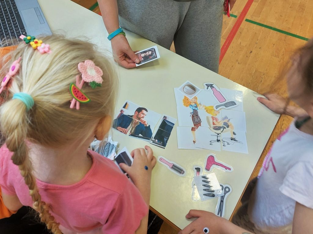 V družboslovnem kotičku so pod mentorstvom profesoric Ane Retuznik in Klaudije Sotlar otroci spoznavali poklice s pomočjo sestavljenk in pripomočkov, ki so povezani s poklici.