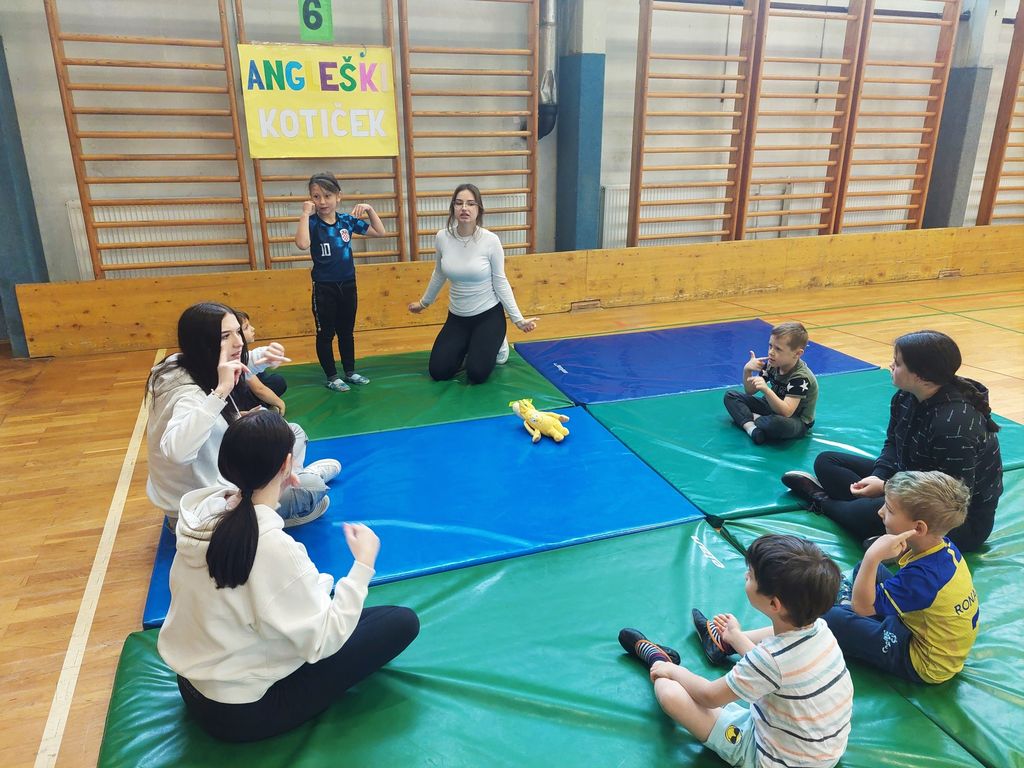 V angleškem kotičku so se preko gibalno-plesnega izražanja pod mentorstvom profesorice Ines Rajgelj naučili bans o banani in osnovne angleške besede.