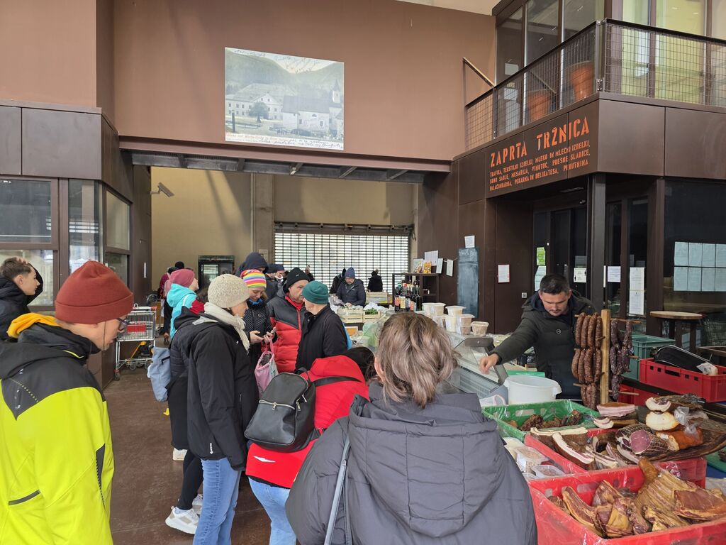 Posebno vrednost delavnic je predstavljal obisk lokalne tržnice in pogovor z lokalnimi slovenskimi kmetovalci in kmetovalkami, ki so našim udeležencem in udeleženkam predstavili svoje ekološke pristope k pridelavi zelenjave, sadja in mleka. Ob njihovih pričevanjih smo znova potrdili, kako pomembno je lokalno pridelovanje in odgovorno nakupovanje, pri katerem pa ne smemo pozabiti tudi na lastno eko embalažo. Obiskali smo tudi bližnji trgovski center, kjer smo raziskovali, katere izdelke z oznakami ekološko, bio ter lokalno oz. domače lahko potrošnik ali potrošnica najde na prodajnih policah.