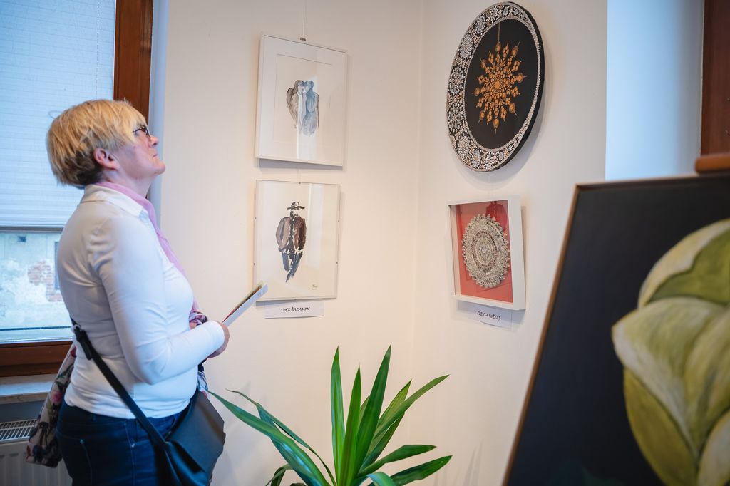 Kar 17 se jih je opogumilo in svoje likovne stvaritve dalo na ogled v javnost. Seveda brez nasvetov in spodbude mentorice Marjetke Žohar ne bi šlo.